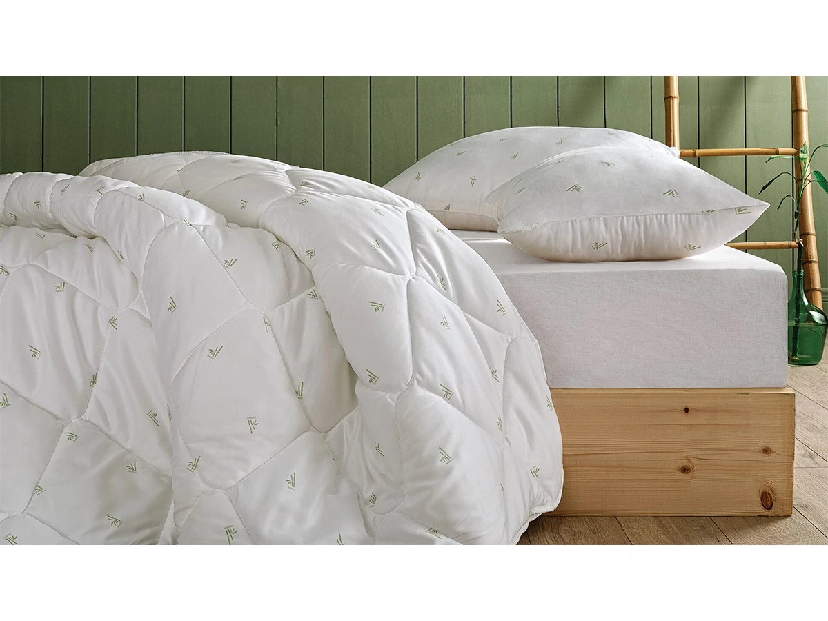 Çevre dostu, organik ve doğaldır. Doğal bambu sayesinde hafif ve nefes alabilen ürünlerdir. Terletmez ve sıcak günlerde nem yönetimi ile kaliteli bir uyku sunar. Bambu baskılı özel saten kumaşı ve kendinden biyesiyle şık bir görüntüye sahiptir.