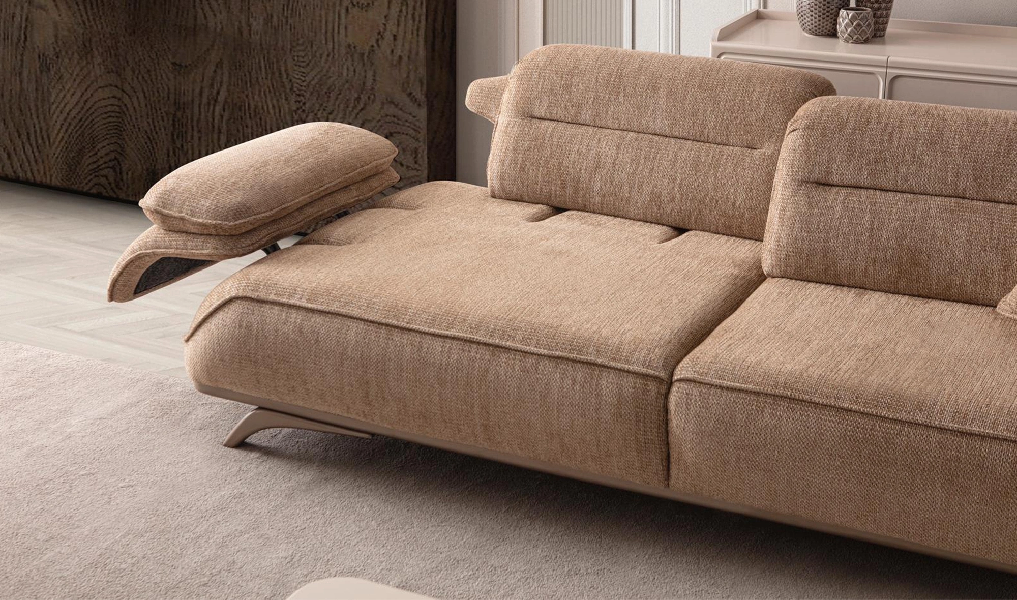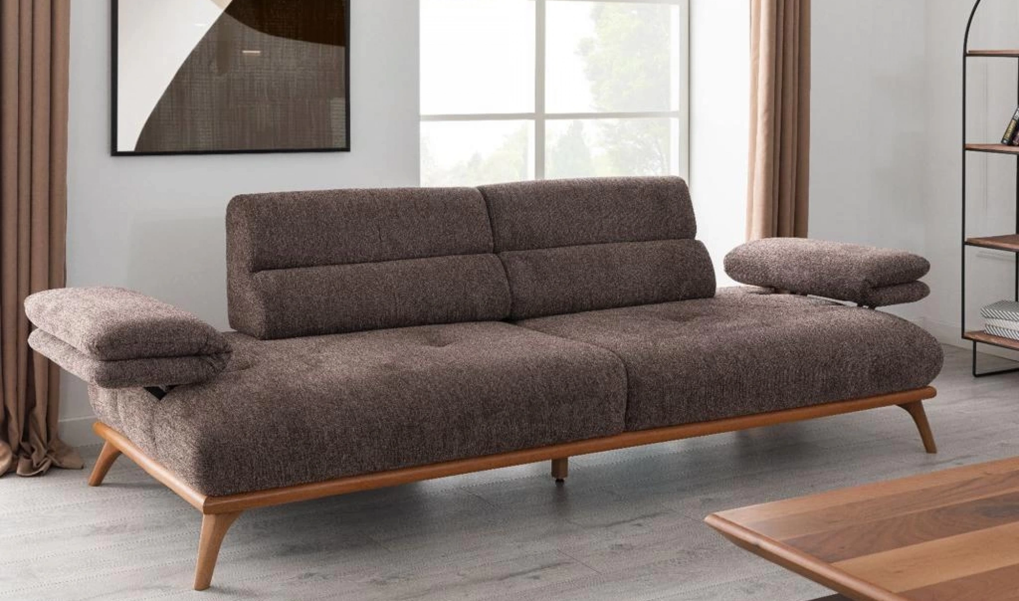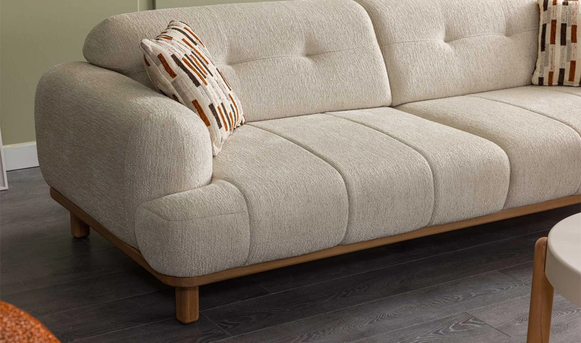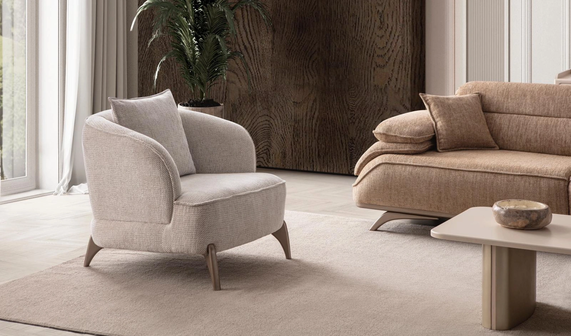 Cesi Koltuk Takımı, modern yaşam alanlarına konfor, zarafet ve fonksiyonelliği bir arada sunmak üzere tasarlandı. Kadife ve nubuk kumaş kombinasyonu, hem yumuşak dokusu hem de dayanıklılığıyla dikkat çeker. Gri, antrasit ve turuncu tonlarının uyumu, ortama sofistike bir karakter kazandırır. Yerden yüksek metal ayak tasarımı sayesinde temizlik kolaylığı sağlarken, sırt mekanizması ve yatak olma özelliği pratik kullanım avantajı sunar.