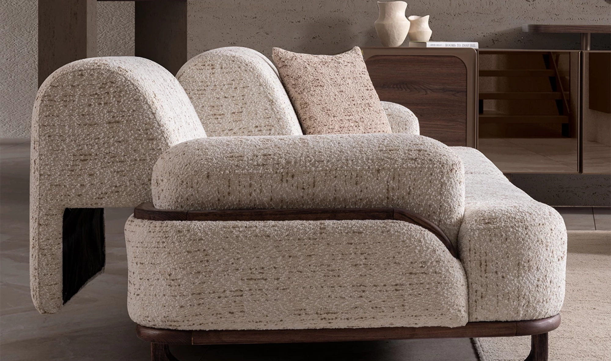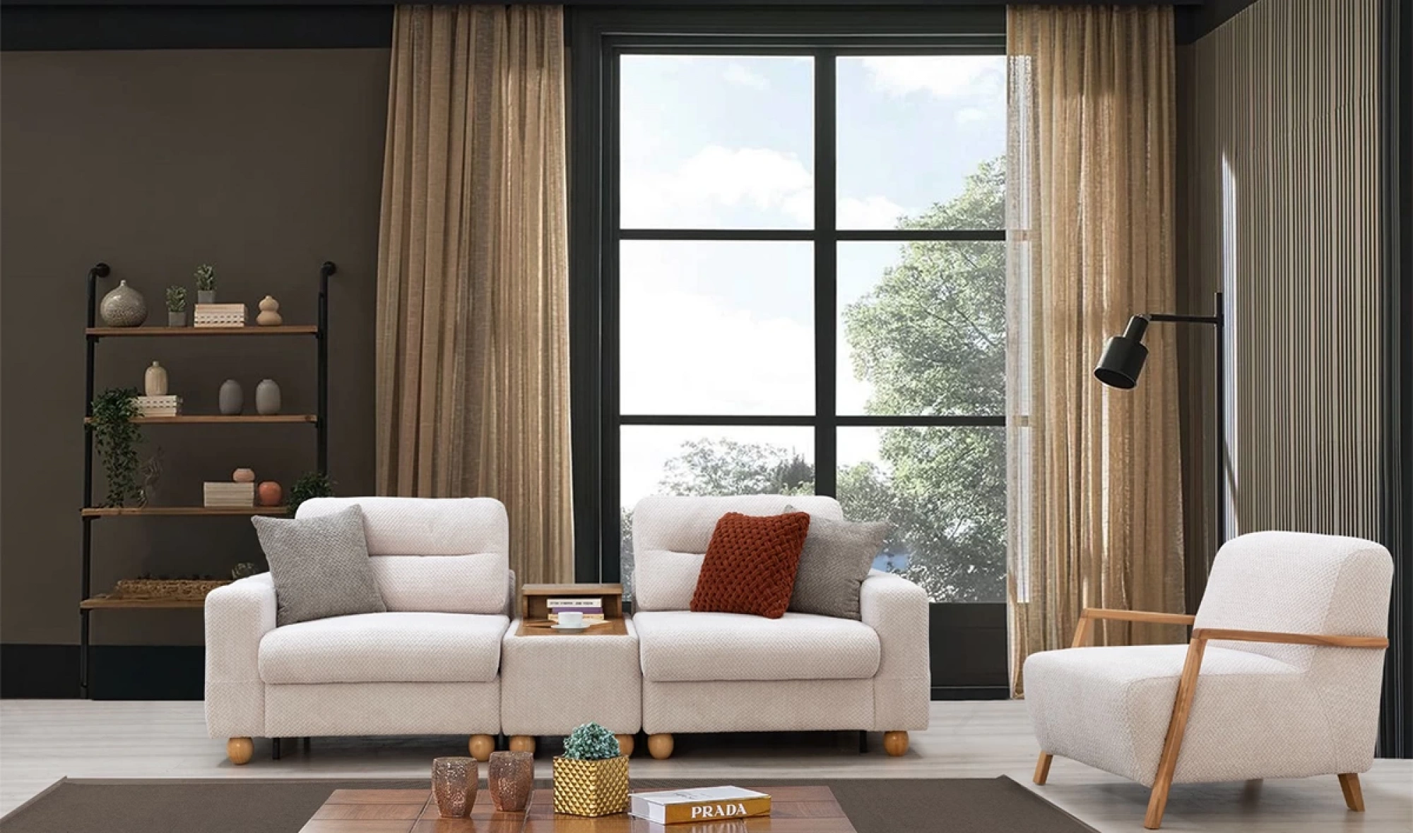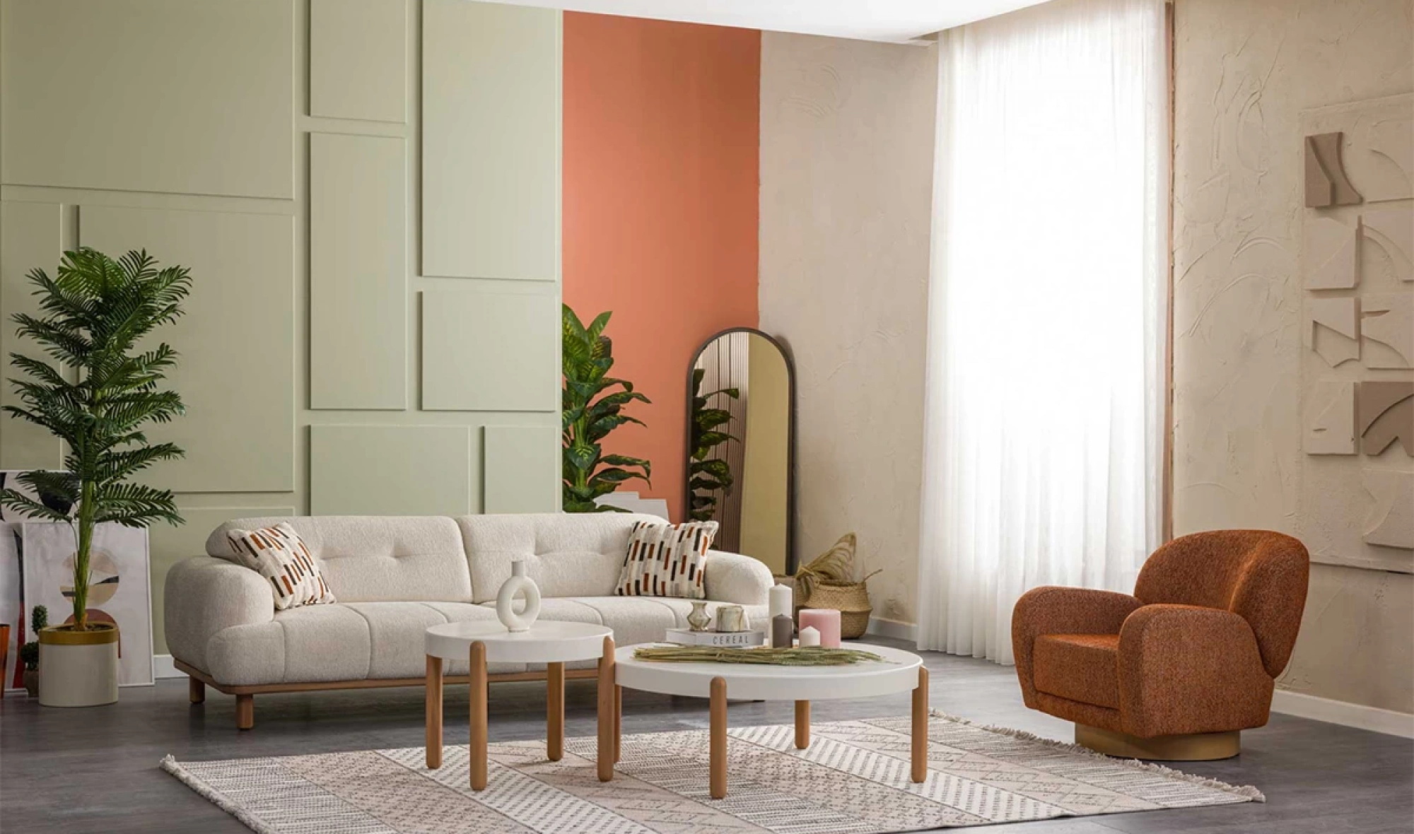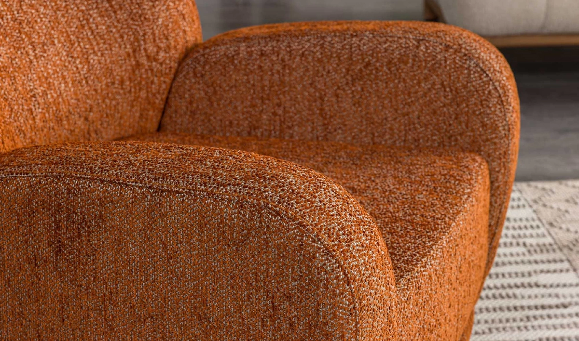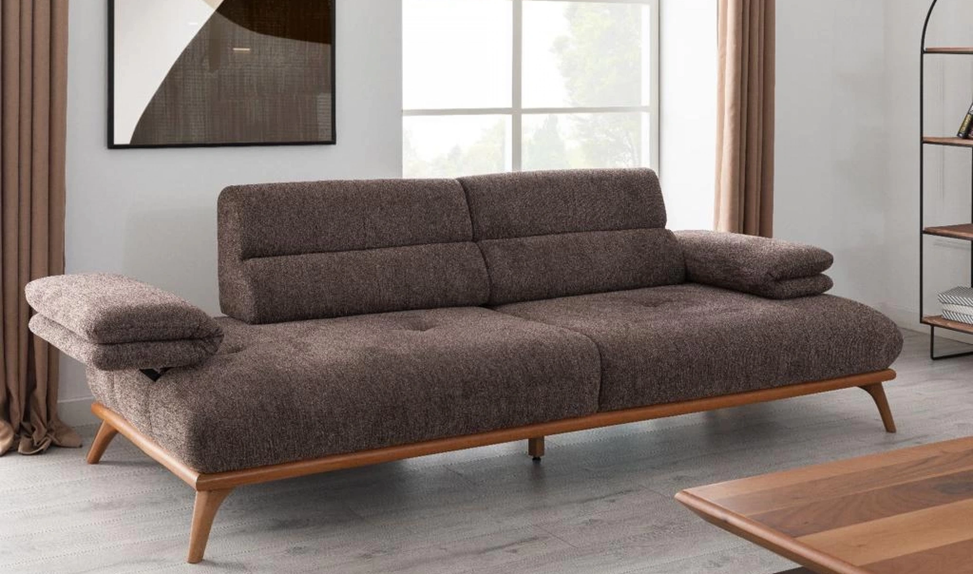 Cesi Koltuk Takımı, modern yaşam alanlarına konfor, zarafet ve fonksiyonelliği bir arada sunmak üzere tasarlandı. Kadife ve nubuk kumaş kombinasyonu, hem yumuşak dokusu hem de dayanıklılığıyla dikkat çeker. Gri, antrasit ve turuncu tonlarının uyumu, ortama sofistike bir karakter kazandırır. Yerden yüksek metal ayak tasarımı sayesinde temizlik kolaylığı sağlarken, sırt mekanizması ve yatak olma özelliği pratik kullanım avantajı sunar.