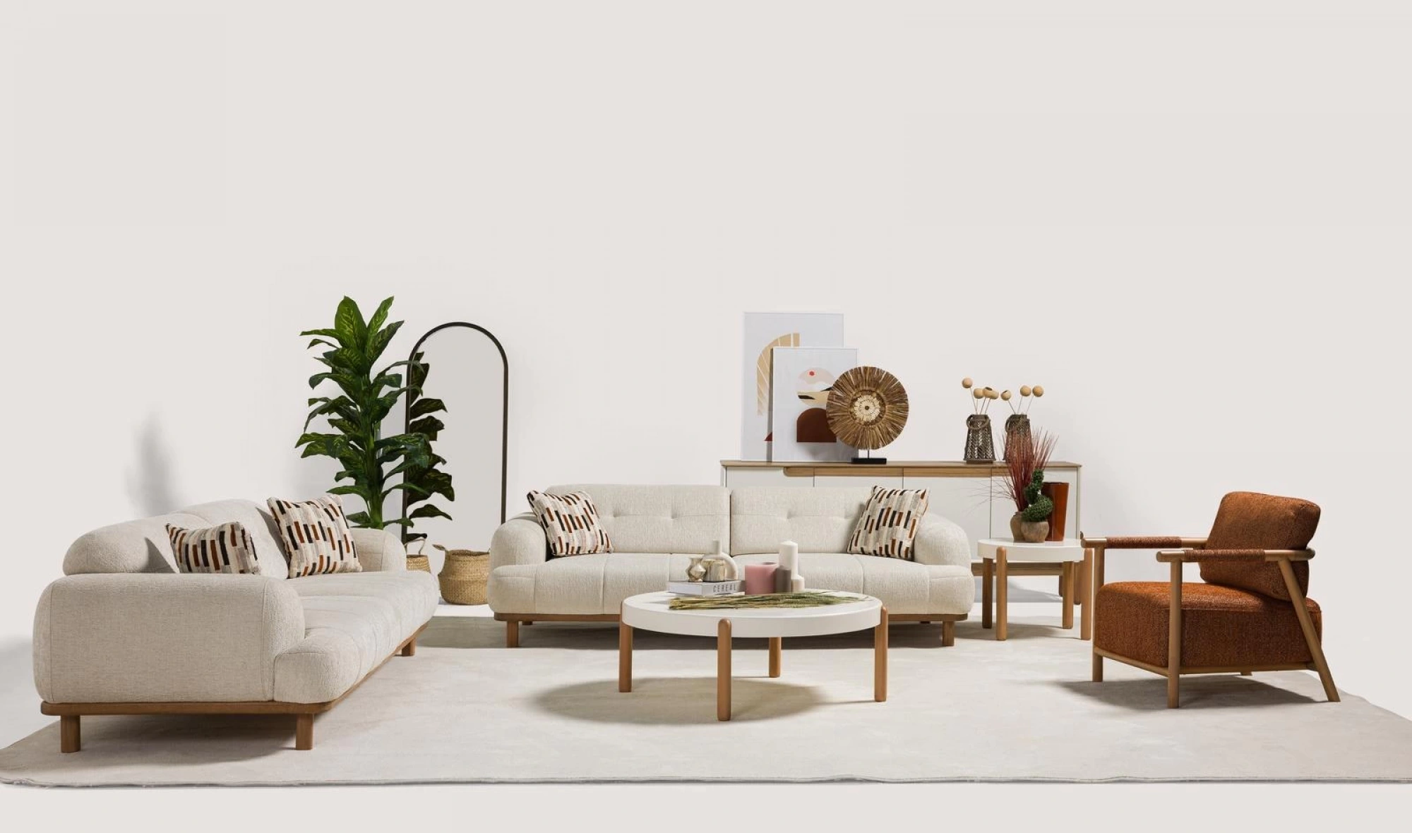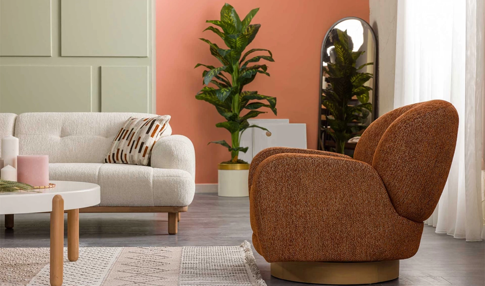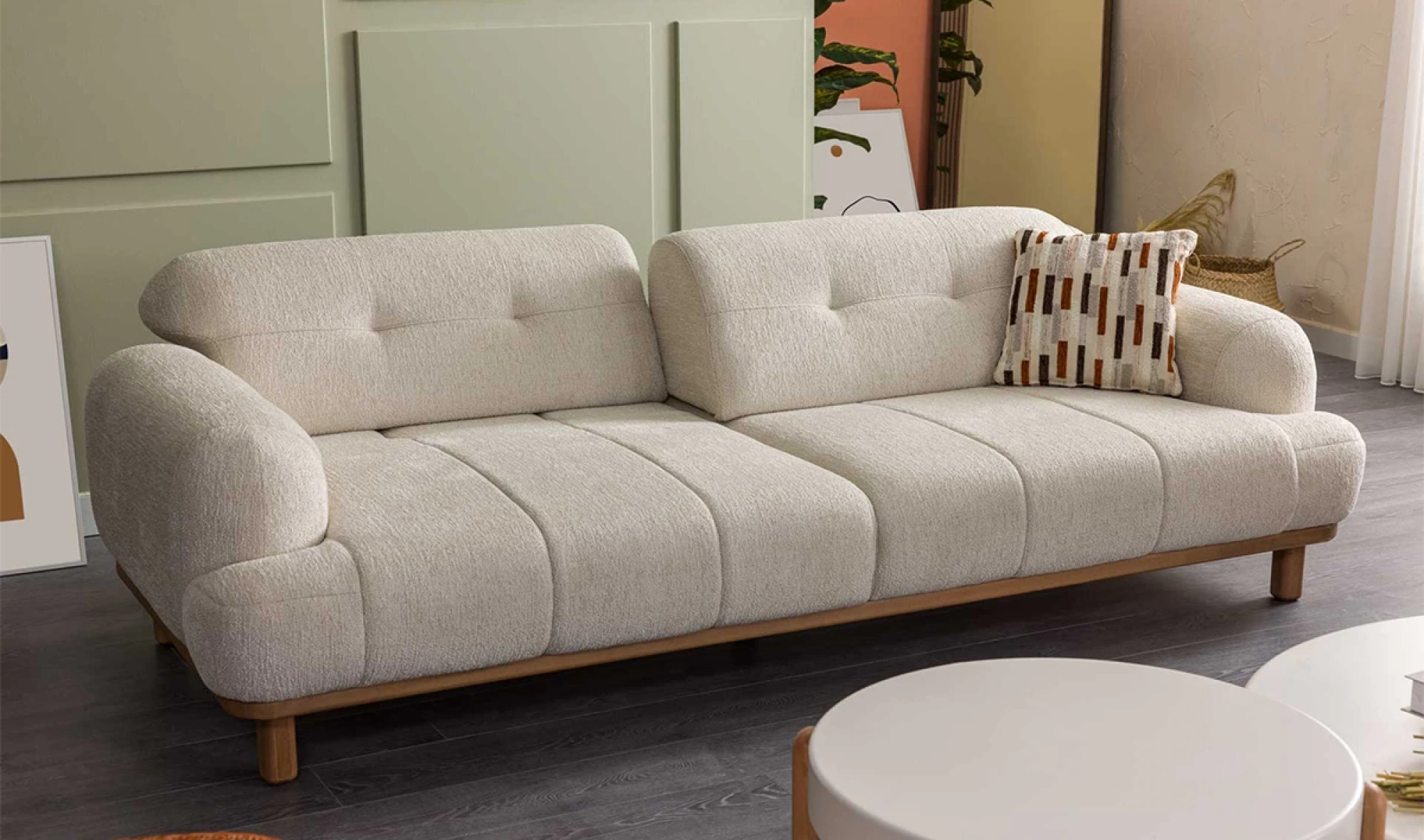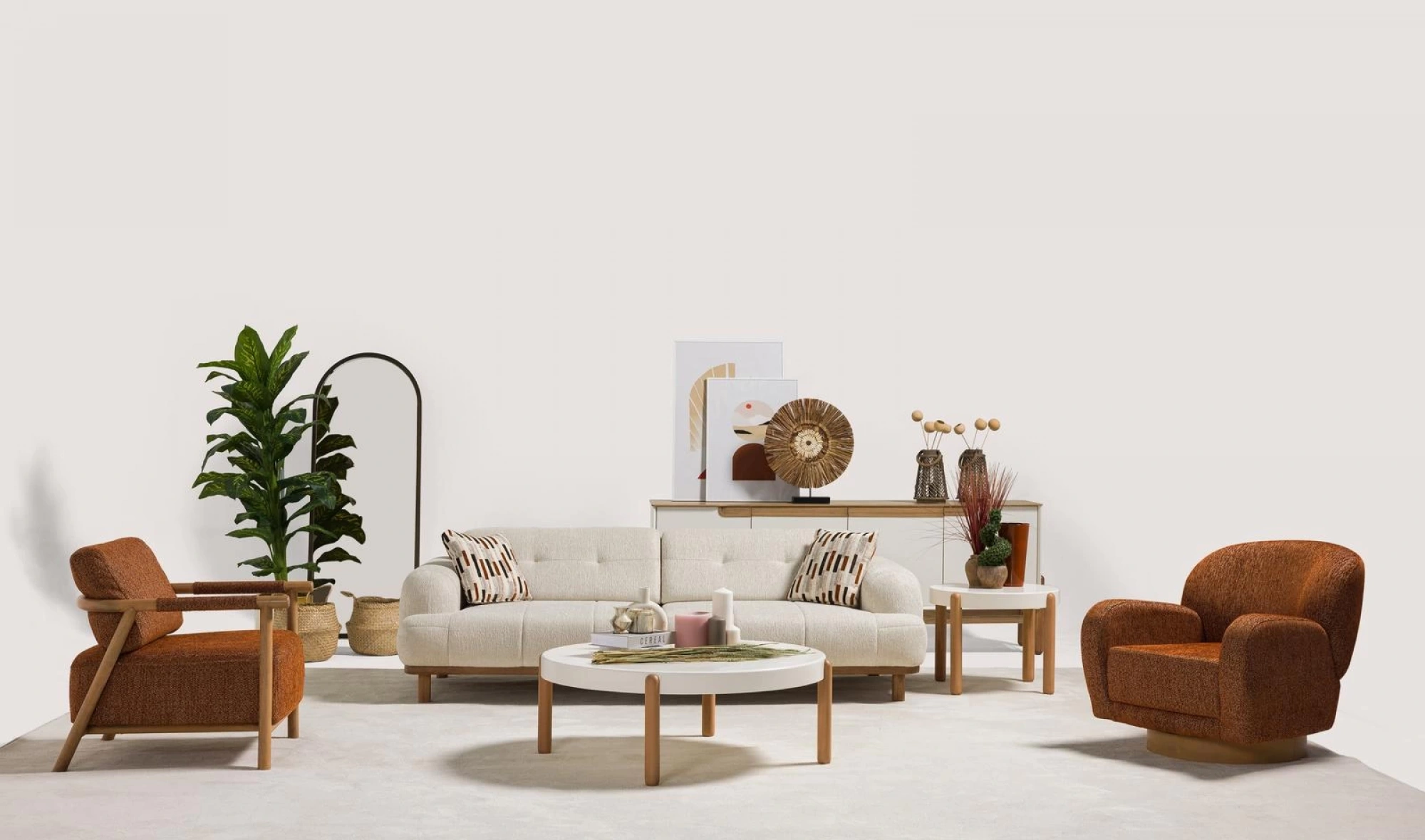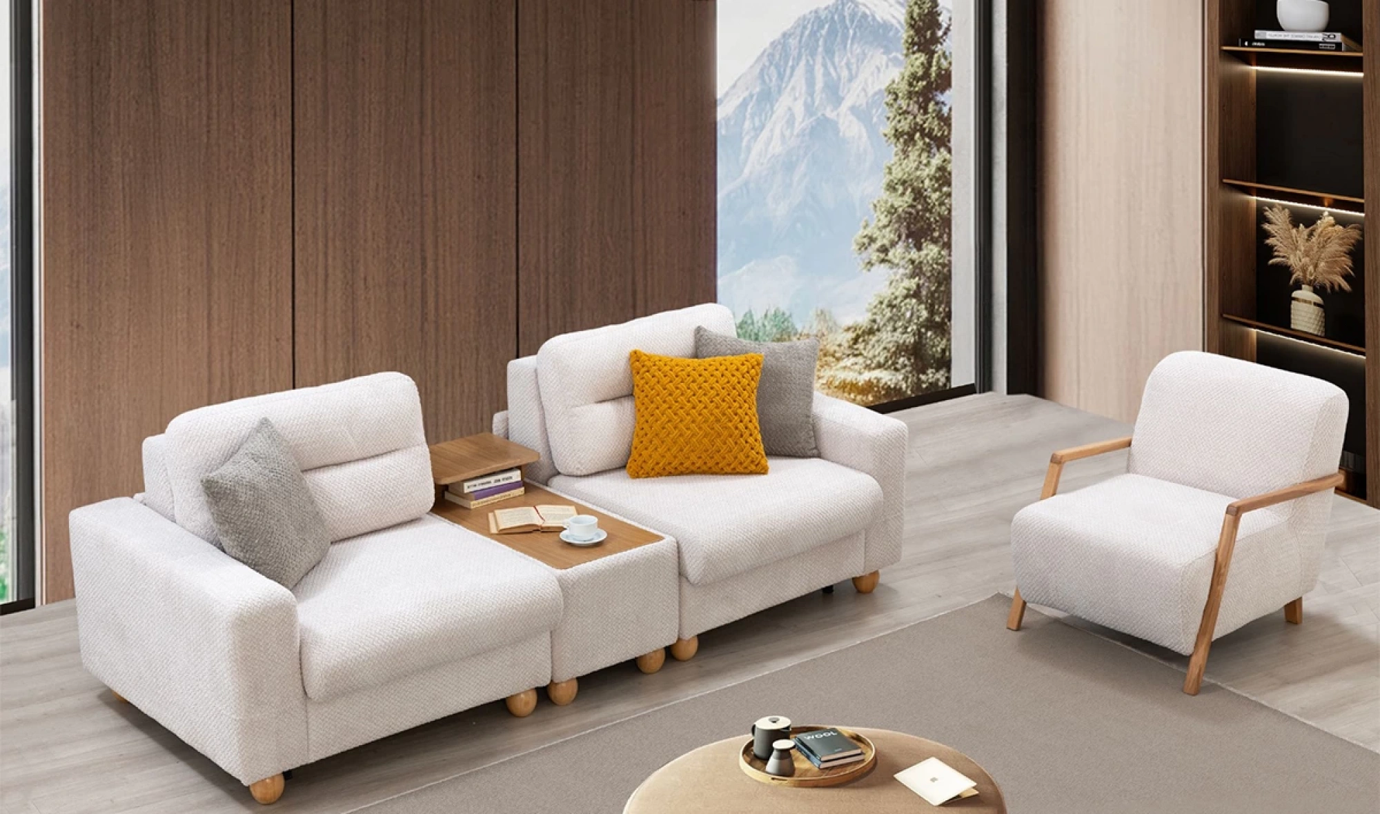Cesi Koltuk Takımı, modern yaşam alanlarına konfor, zarafet ve fonksiyonelliği bir arada sunmak üzere tasarlandı. Kadife ve nubuk kumaş kombinasyonu, hem yumuşak dokusu hem de dayanıklılığıyla dikkat çeker. Gri, antrasit ve turuncu tonlarının uyumu, ortama sofistike bir karakter kazandırır. Yerden yüksek metal ayak tasarımı sayesinde temizlik kolaylığı sağlarken, sırt mekanizması ve yatak olma özelliği pratik kullanım avantajı sunar.