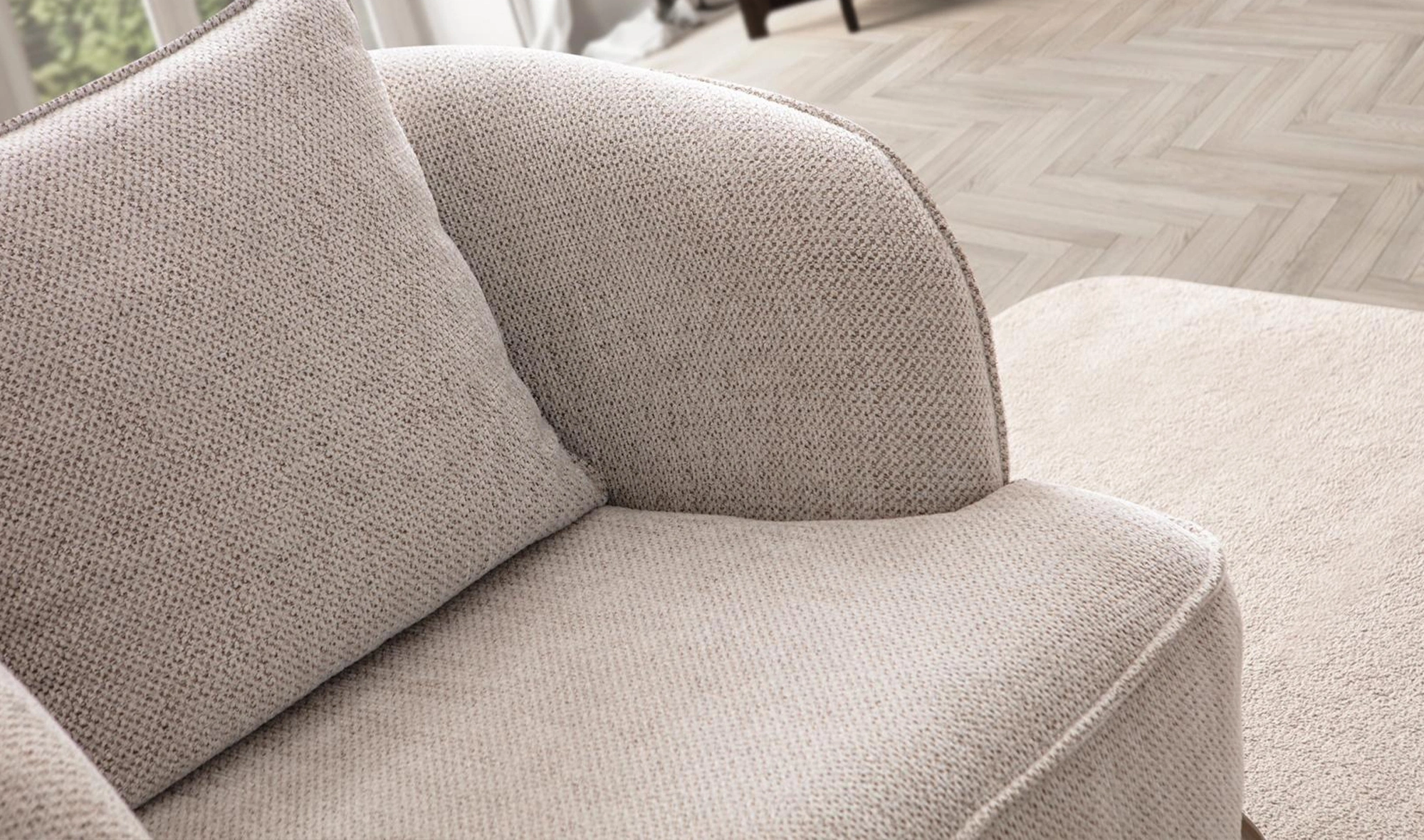 Kadife ve nubuk kumaş kombinasyonu ile estetik doku geçişi