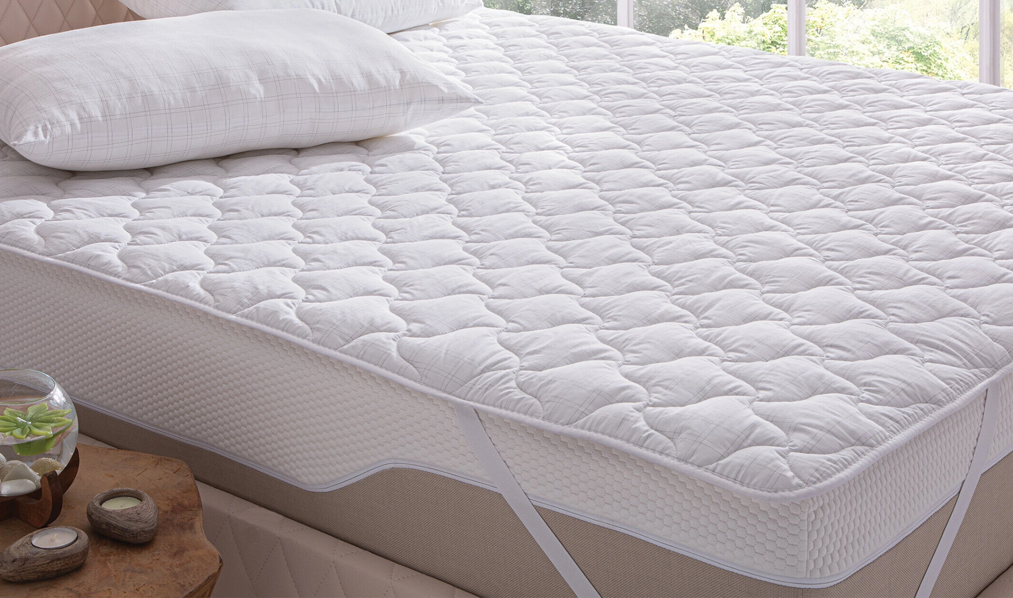 Pamuk liflerinden üretilmiş kumaşıyla vücudun nem dengesini koruyan CORBELL Lastikli Alez, hafif ve yumuşak dolgusu sayesinde konforlu bir uyku sağlarken kenar lastikli yapısı ile yatağınıza sabitlenir ve tam koruma sağlar.