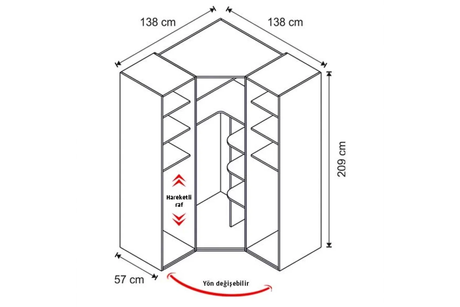 3 Kapılı Dolap140 cm207 cm57 cm