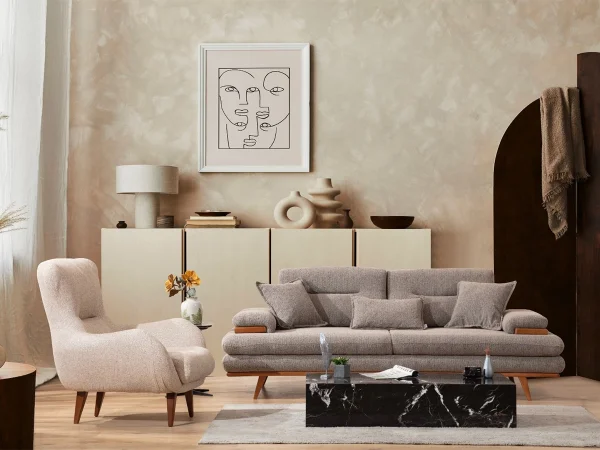 Teddy Koltuk Takımı modelleri, özellikle country tarzı dekorasyonlarla mükemmel bir uyum yakalıyor. Ahşap detaylarla kombinlenen