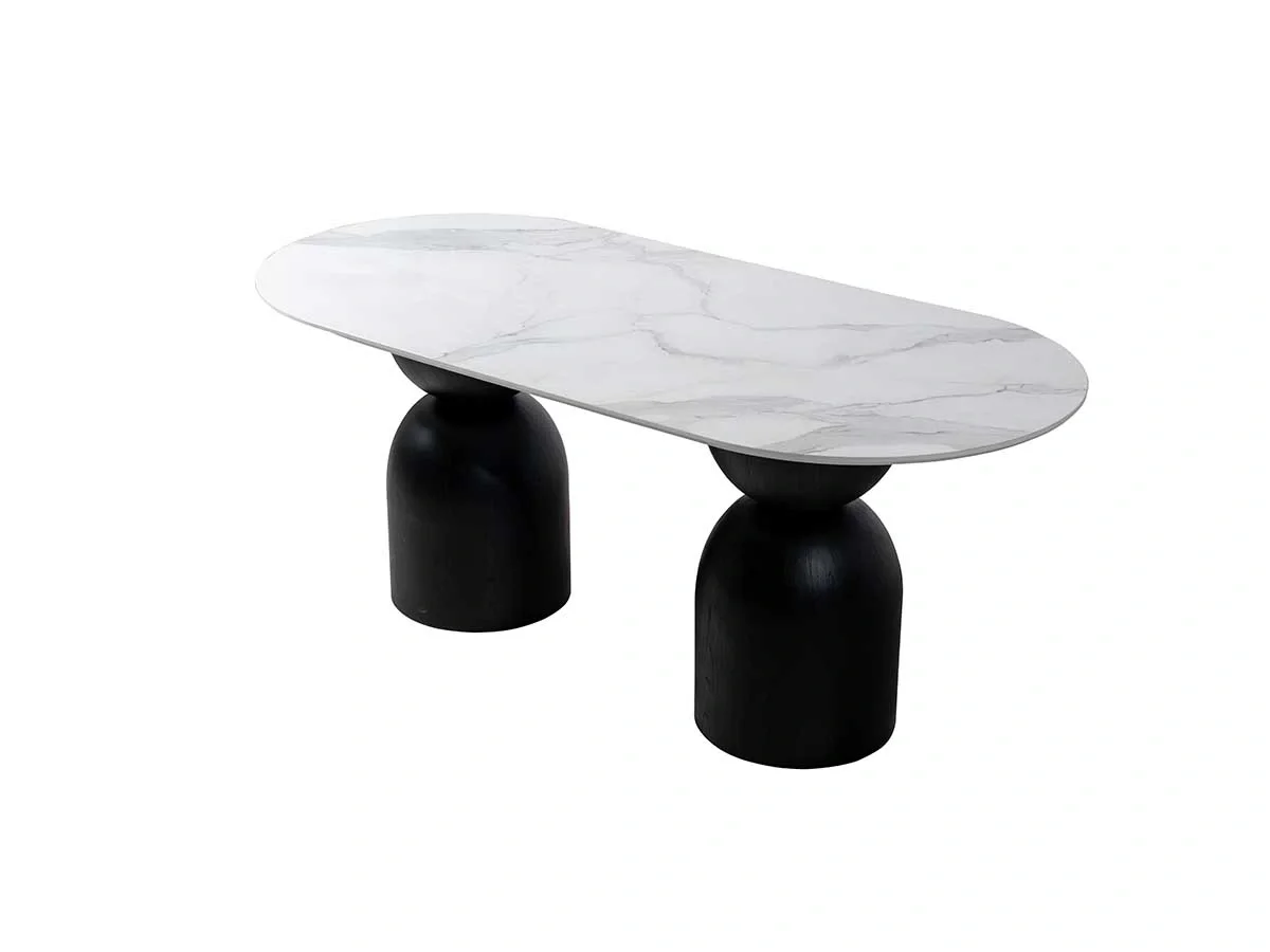 Kum Saati Mermer Baskılı Elips Masa