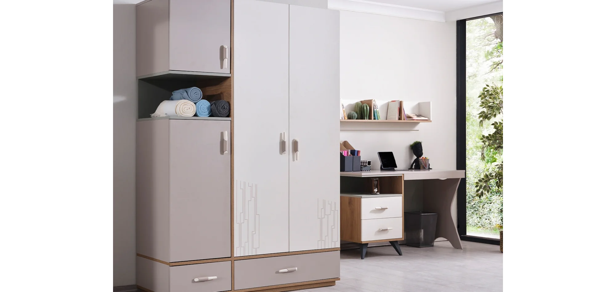 3 kapılı Dolap + 120 lik Karyola + Çalışma Masası