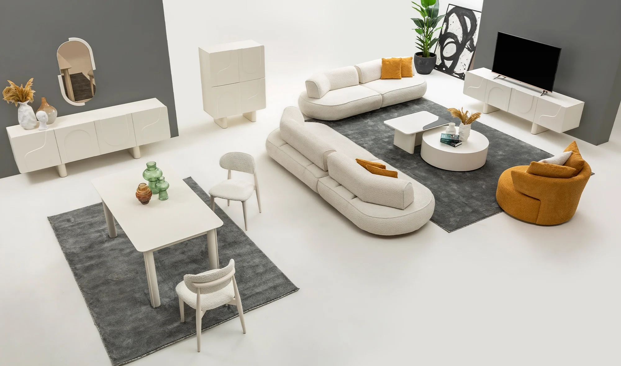 Geniş oturum alanı ve modern çizgileri ile dikkat çeken Lumeria, günlük kullanımda maksimum rahatlık sağlarken salon dekorasyonunuza güçlü ve sofistike bir hava katar.