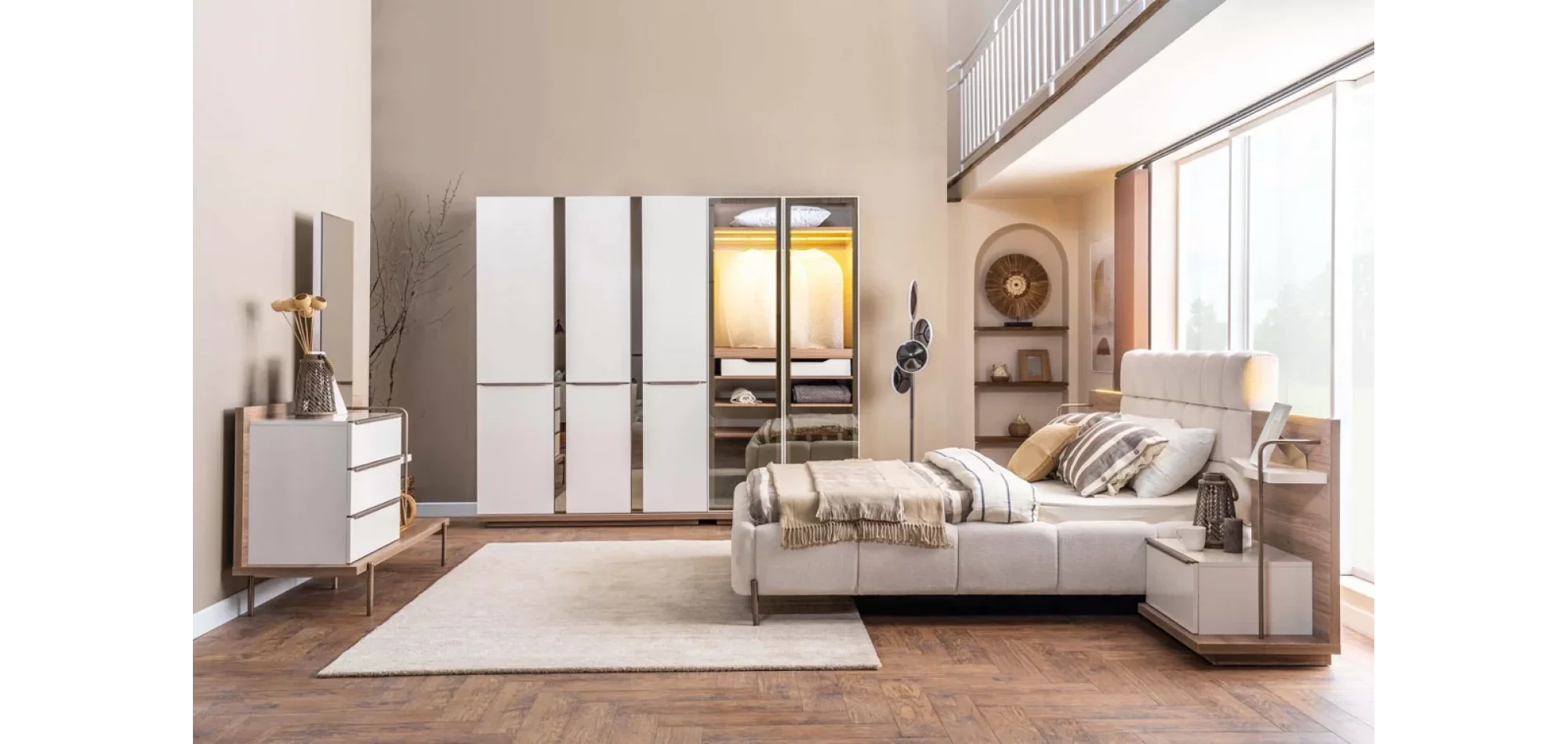 • Gardırop: 5 kapılı, ayna yüzey tasarım