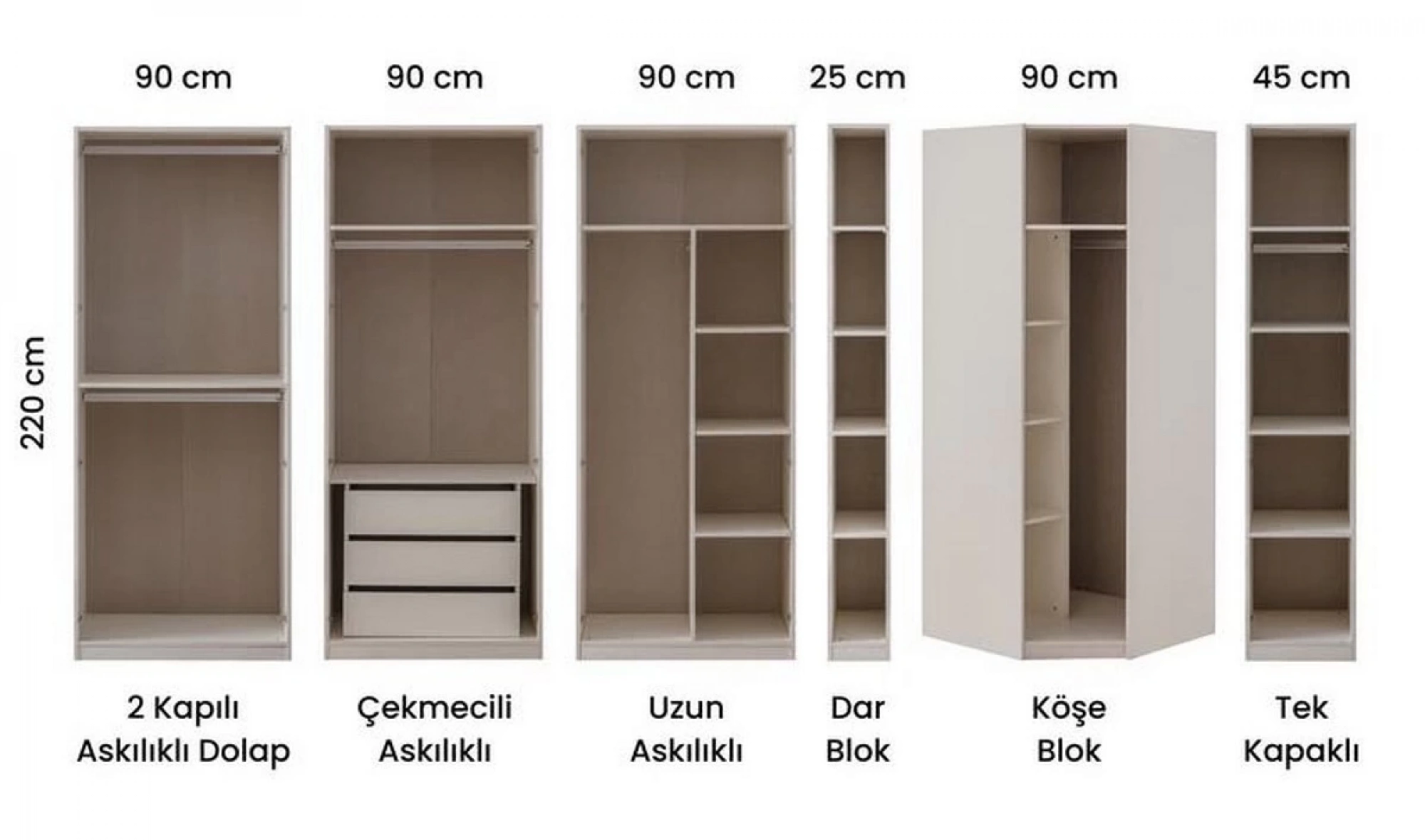 | Köşe Dolap | 95 cm | 95 cm | 217 cm |