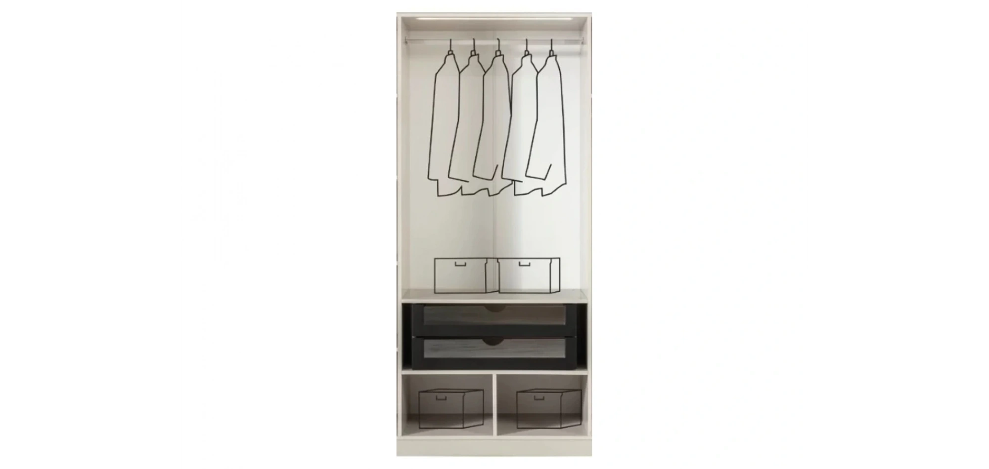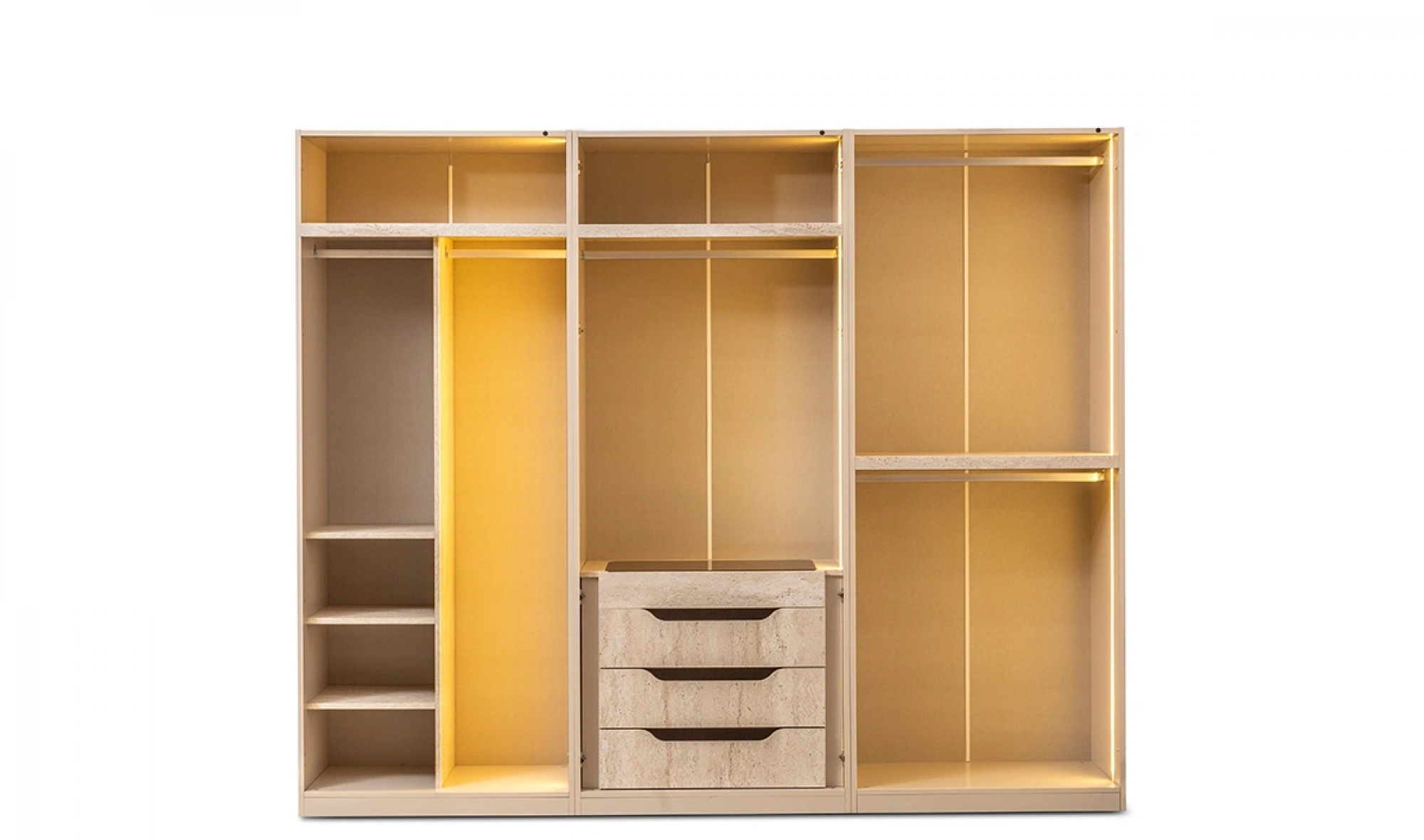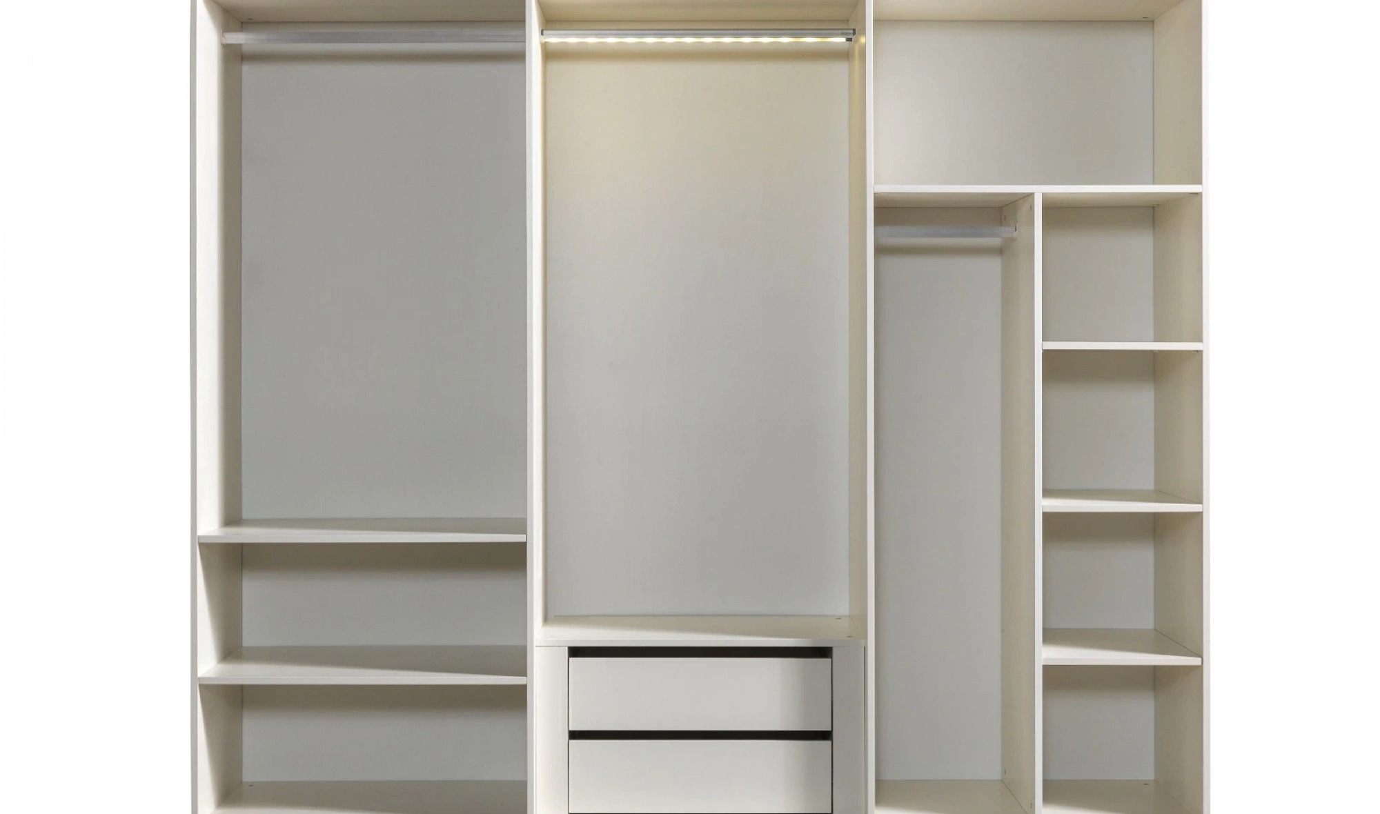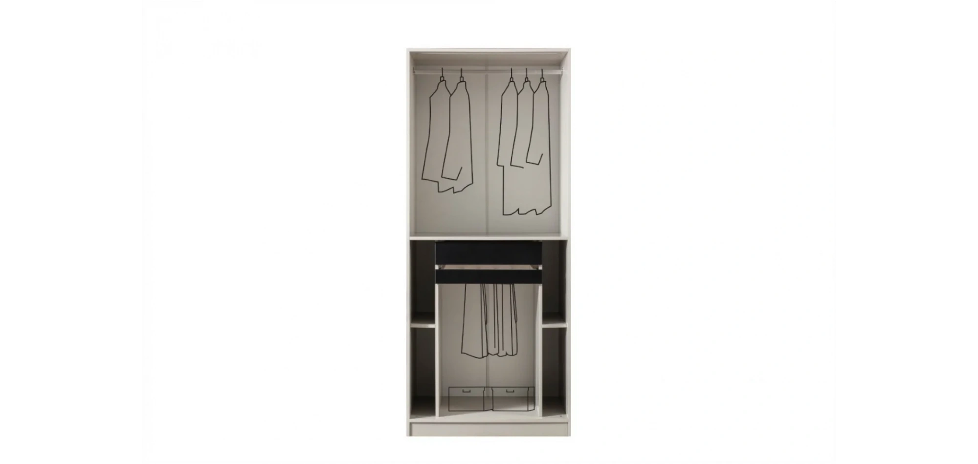 - Dolap: Geniş iç hacim – askı bölmeleri, raflar, çekmeceler
