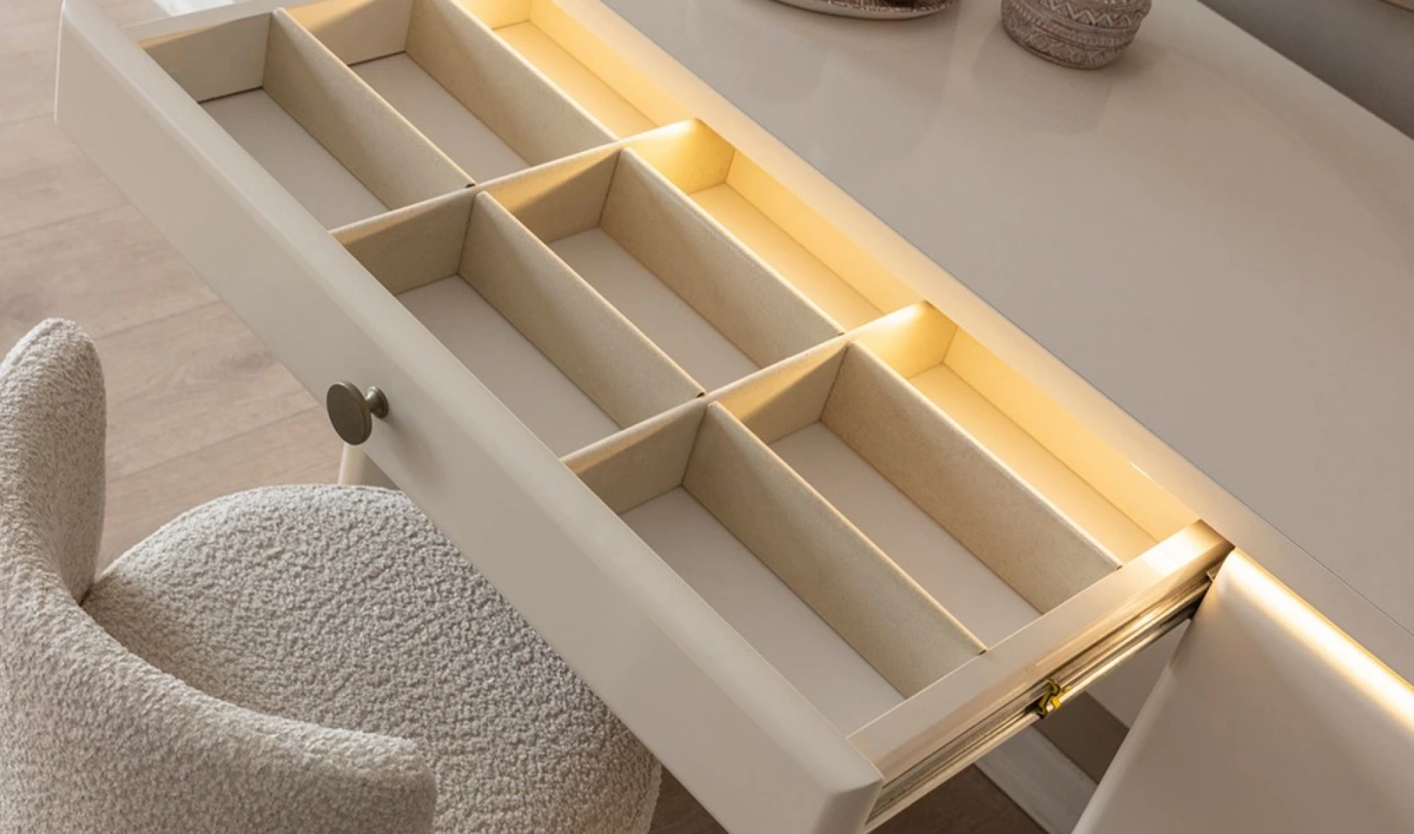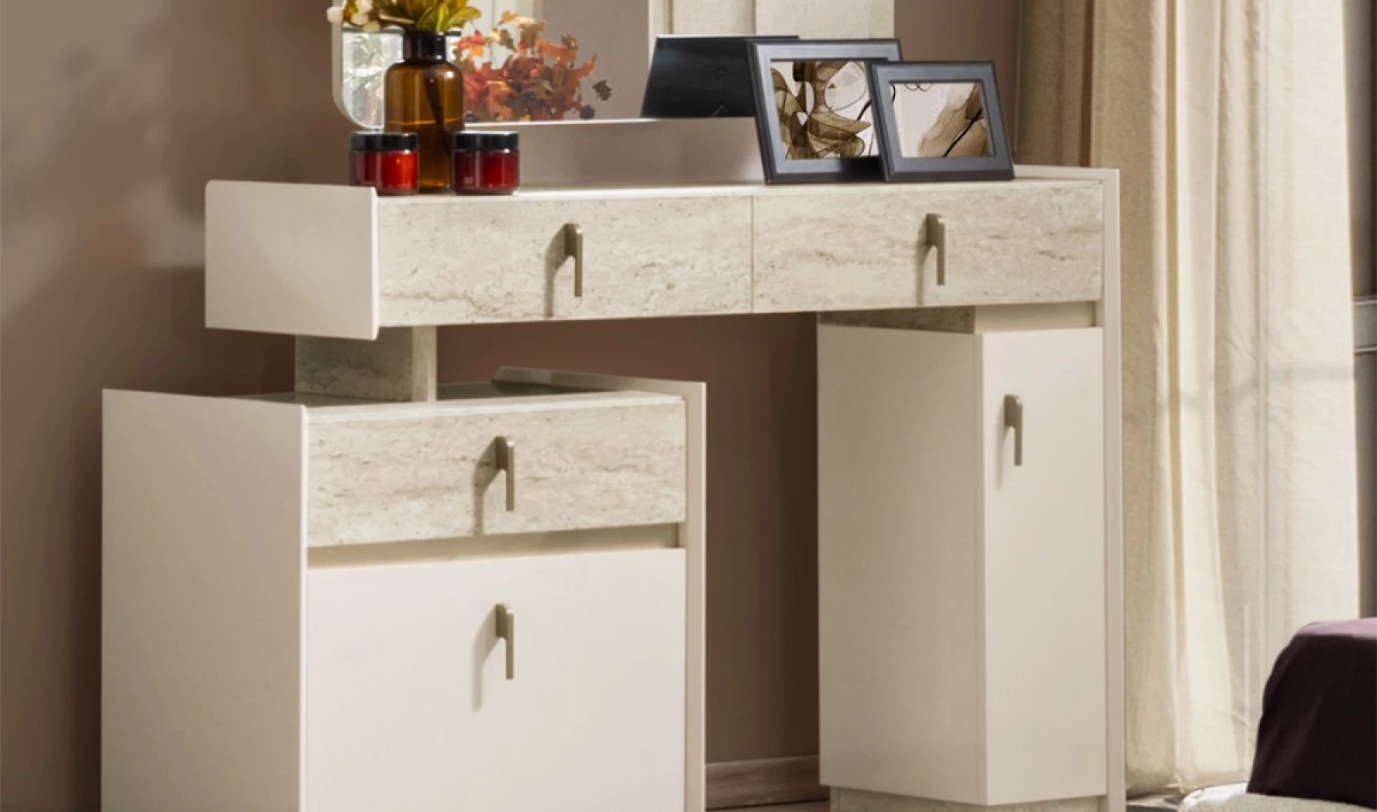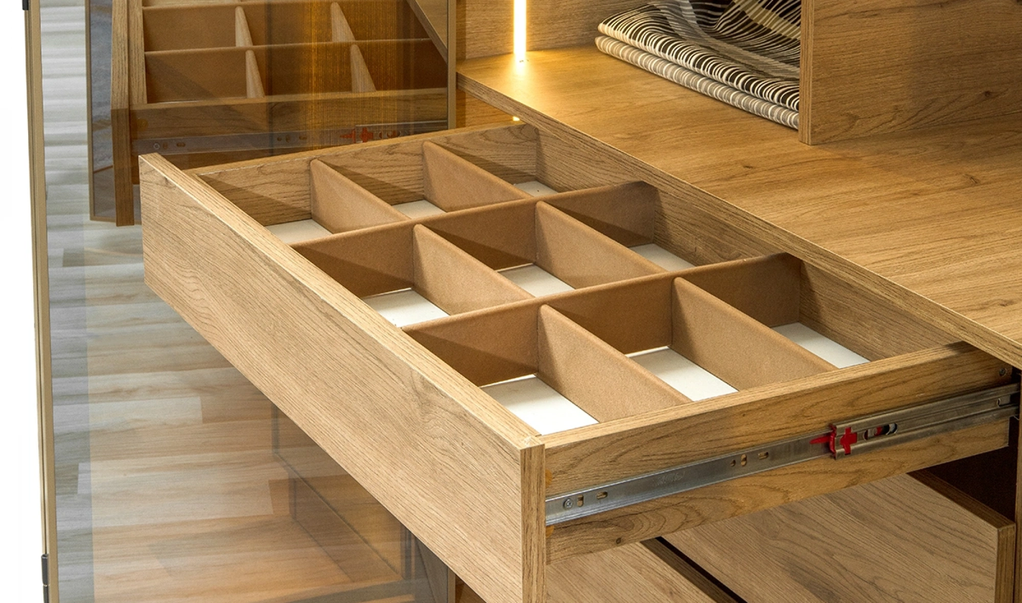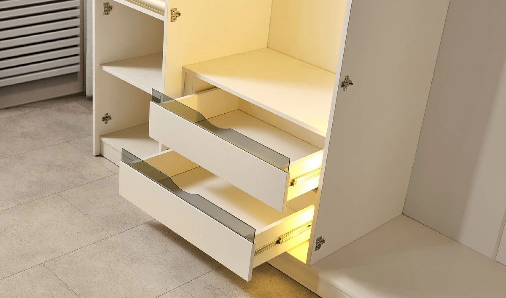 - Dolap: Geniş iç hacim – askı bölmeleri, raflar, çekmeceler
