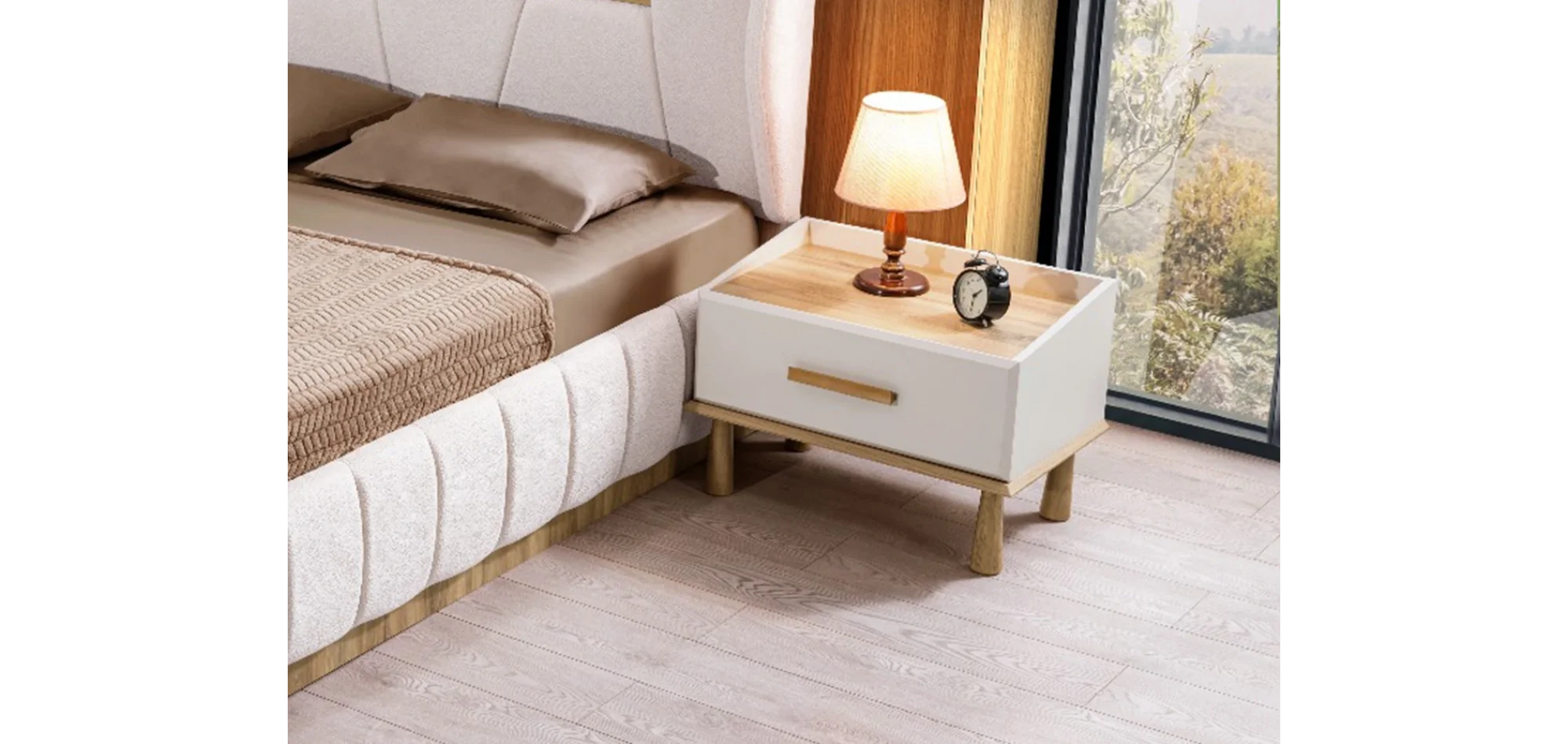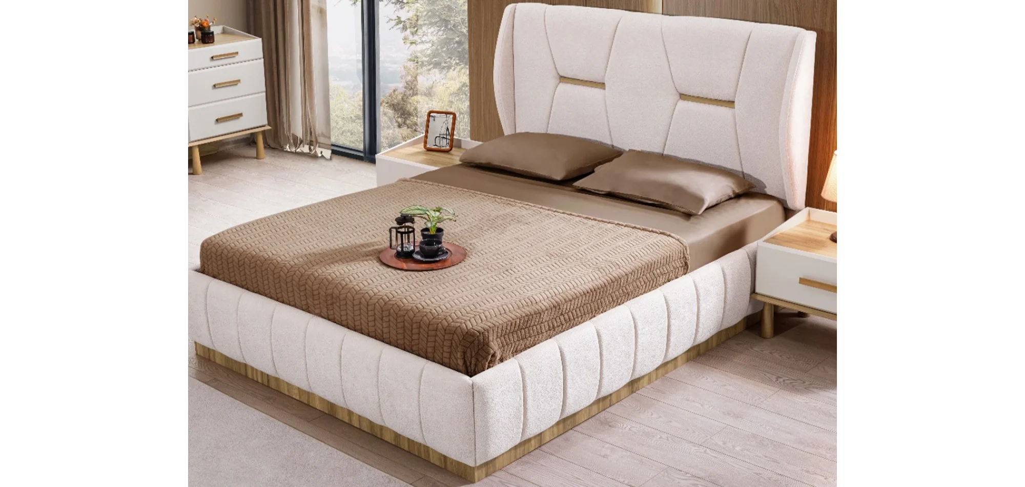 Minimalist detaylarla modern bir duruşa sahip olan Mons, yatak odanıza ferahlık ve denge kazandırır. Özellikle doğal renk tonlarına sahip mekanlarda etkileyici bir atmosfer yaratır. Kişiye özel üretim seçeneğiyle ihtiyaçlarınıza birebir uyum sağlar.