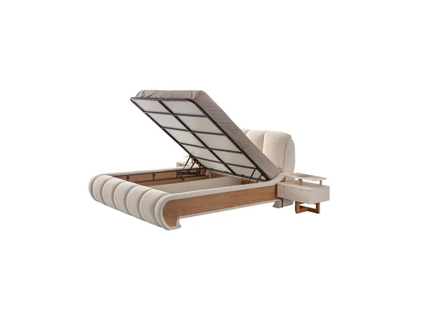Bazalı karyola ekstra depolama alanı sağlarken, komodin üstü şarj alanı ve kitap okuma lambası gibi fonksiyonel özellikler konforunuzu zirveye taşır.