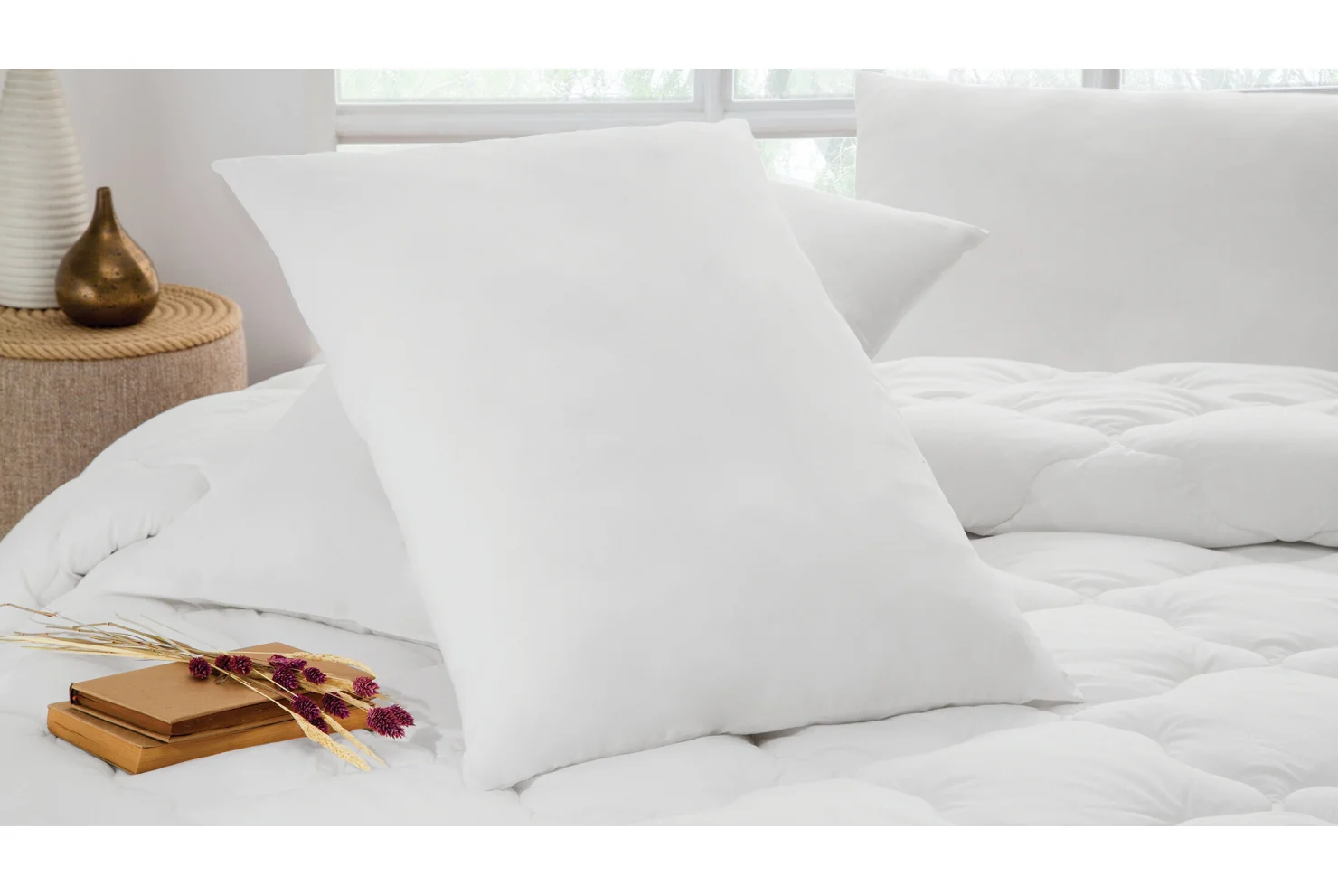 %100 pamuk kumaşı ve silikonize elyaf dolgusu ile yumuşak ve dolgulu bir forma sahip Perle Yorgan, gece boyunca nem ve ısı dengesini koruyarak sağlıklı, sıcak ve yüksek konforlu bir uyku deneyimi sunar. Makinede yıkanabilir.