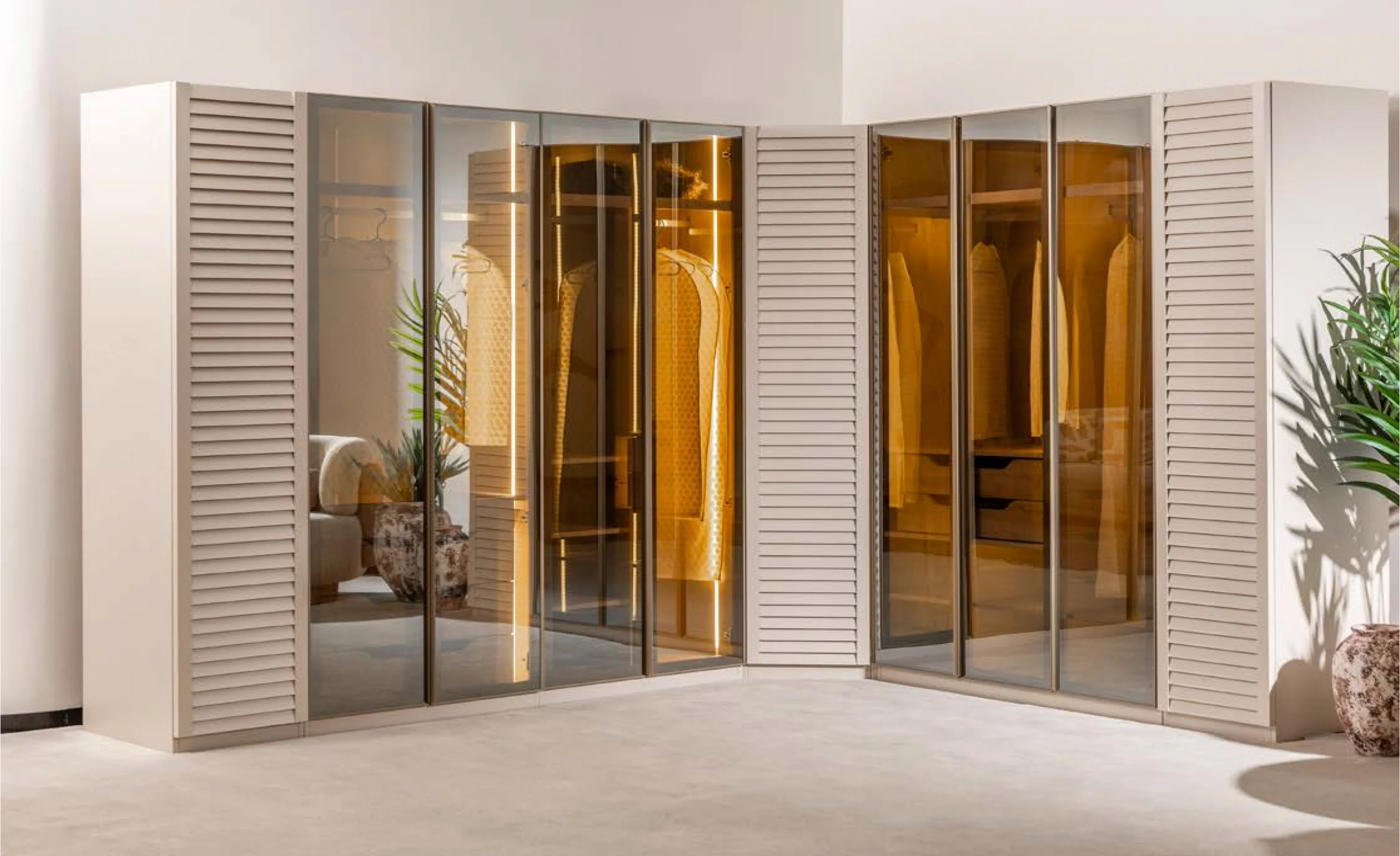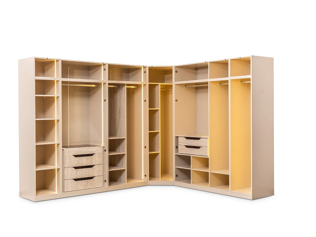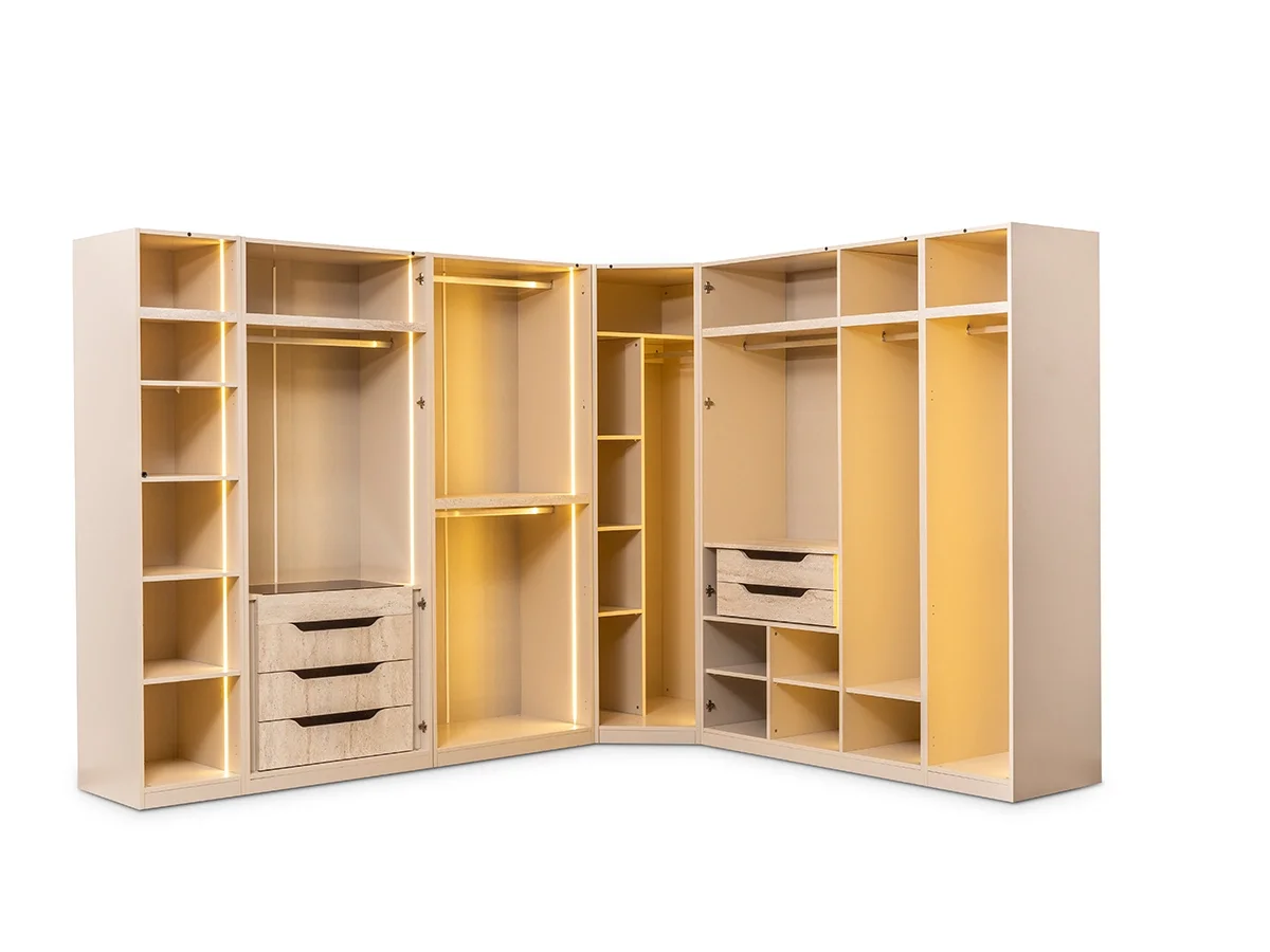 Modern yaşam alanları için tasarlanan Troya Giyinme Odası, modüler yapısı ve sınırsız kombinasyon imkânı sayesinde yaşam alanınıza tamamen uyum sağlar. Panjur kapak ve reflekte kapak seçenekleri ile hem estetik hem fonksiyonelliği bir arada sunar.