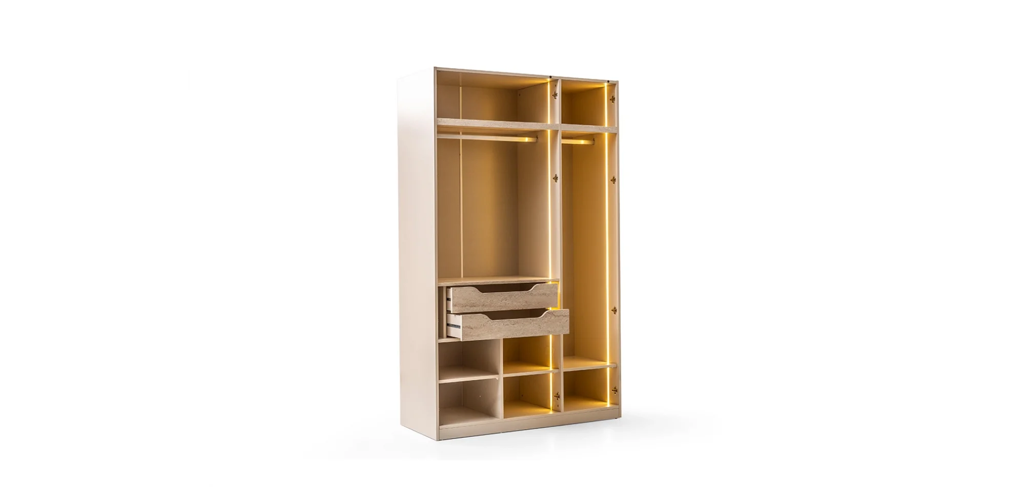 Troya Yatak Odası Takımı ile yatak odanıza şıklık ve fonksiyonellik kazandırın. Modern çizgilere sahip tasarımı, LED ışıklı detayları ve modüler yapısıyla hem estetik hem de kullanışlı bir yaşam alanı sunar.