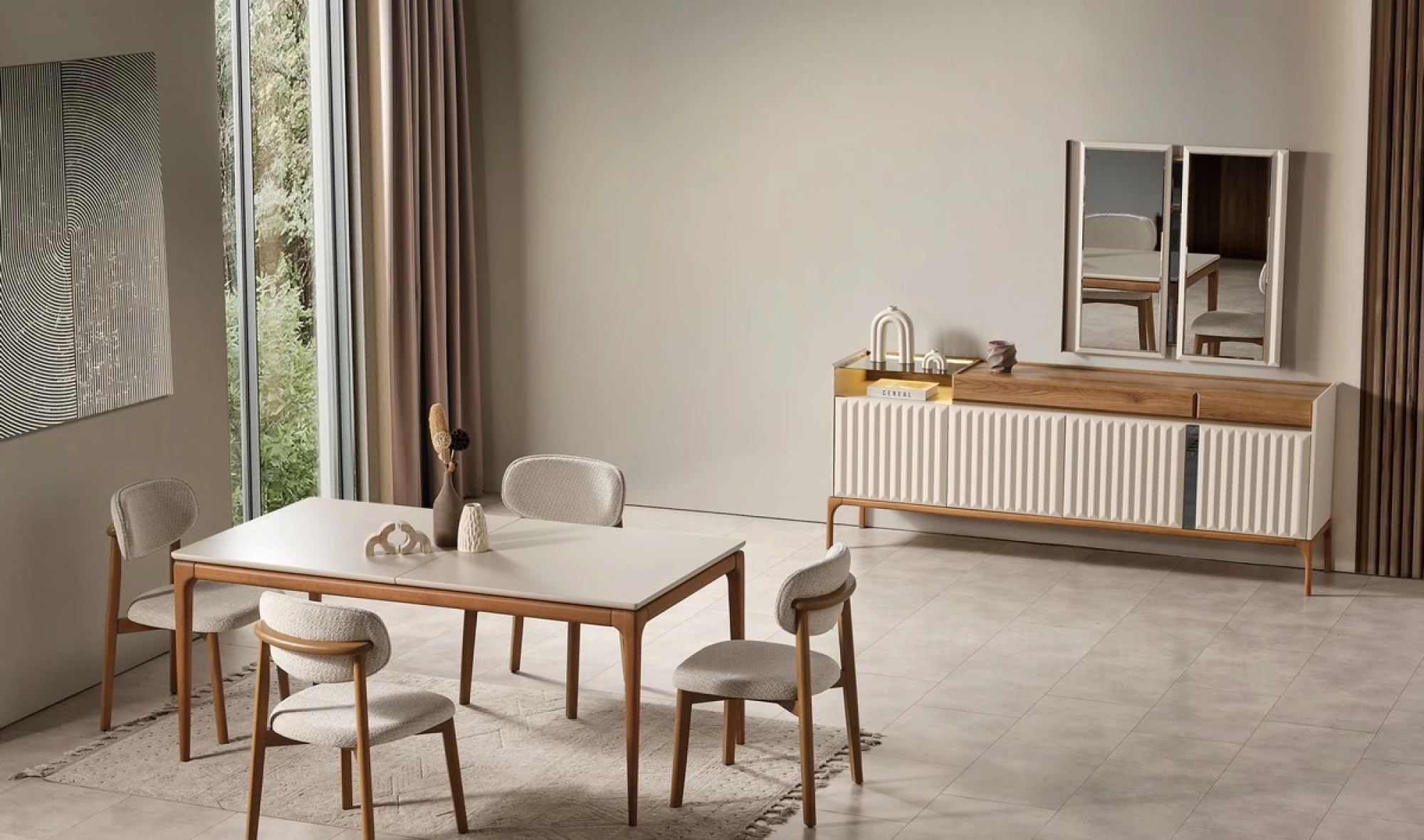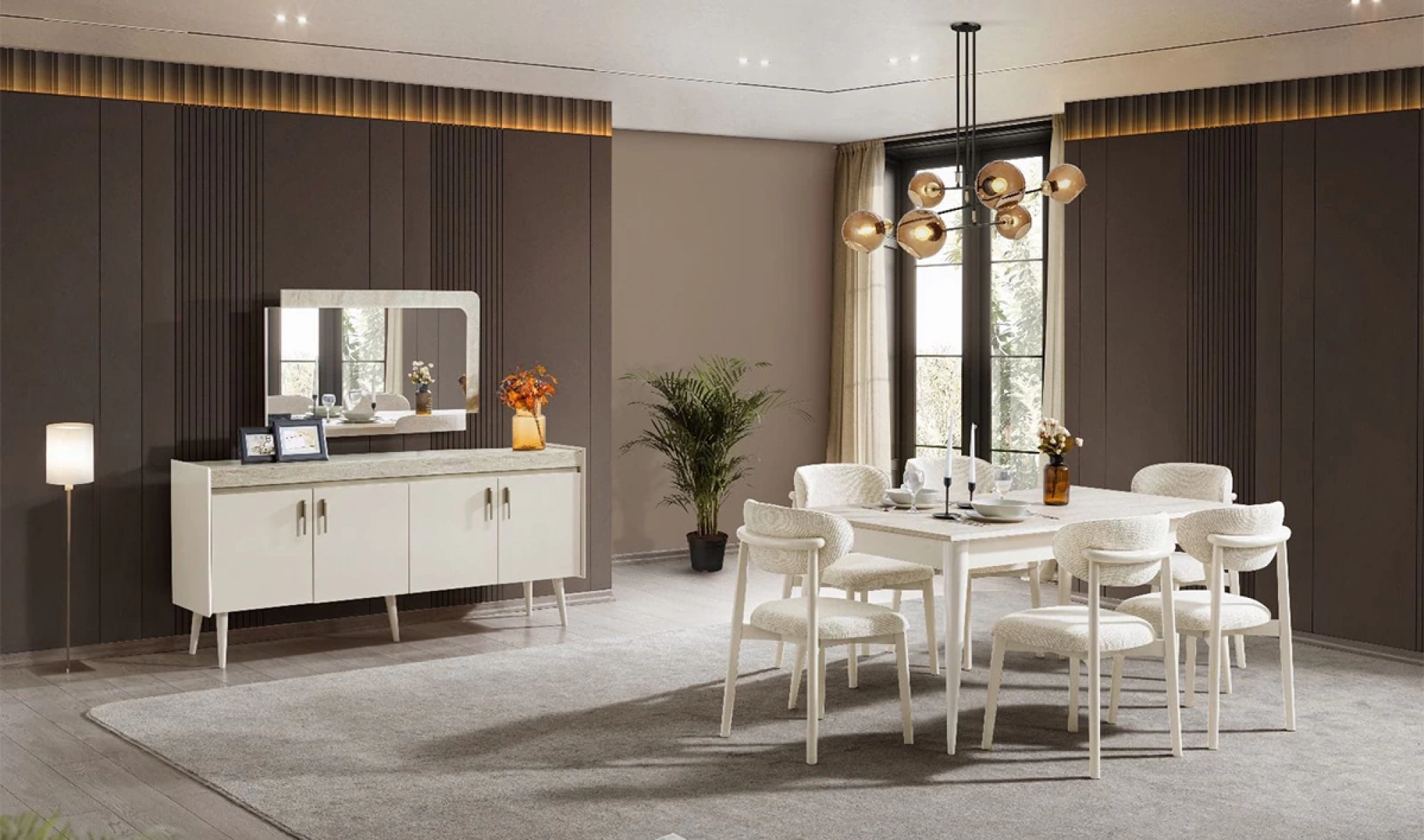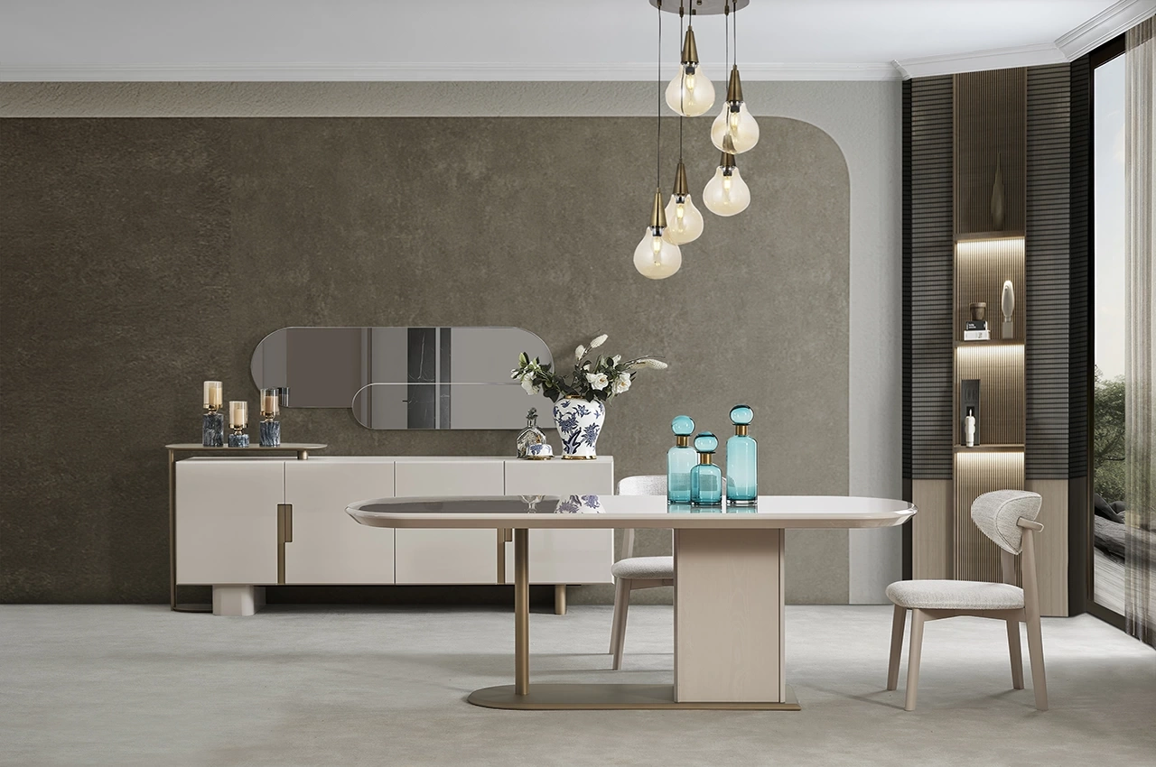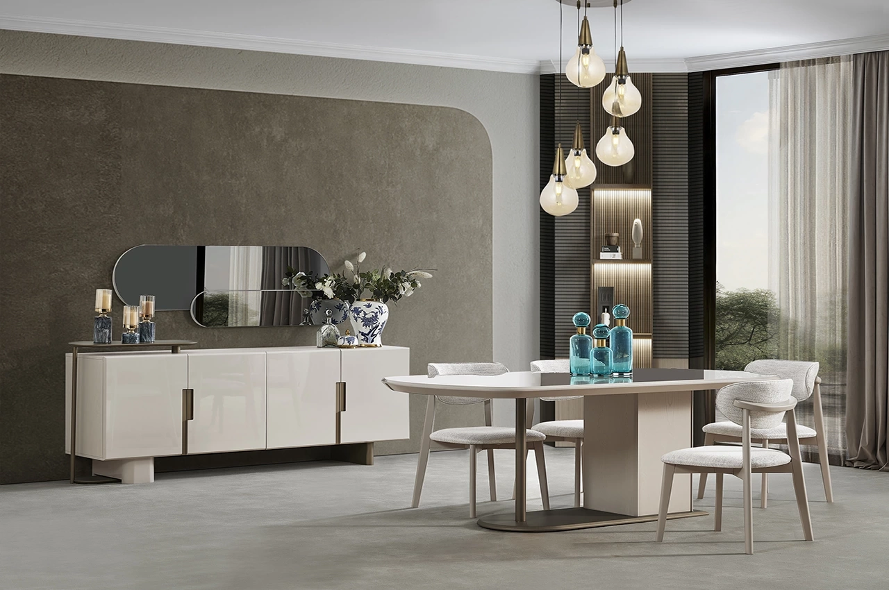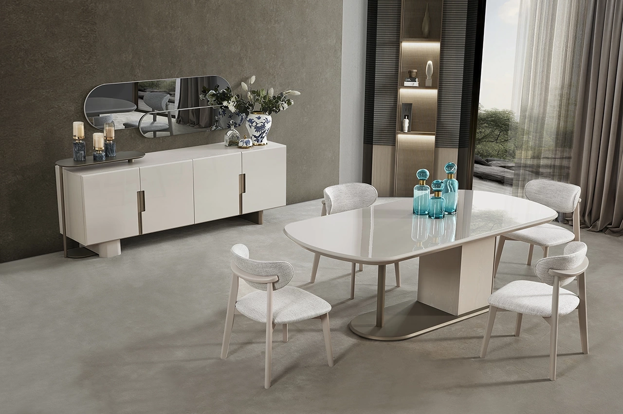 Şıklığı ve işlevselliği bir araya getiren Yasmin Yemek Odası Takımı, modern yaşam alanları için özel olarak tasarlandı. Yalın hatları, göz alıcı duruşu ve konforlu yapısıyla hem estetik hem de pratik kullanım sunar.