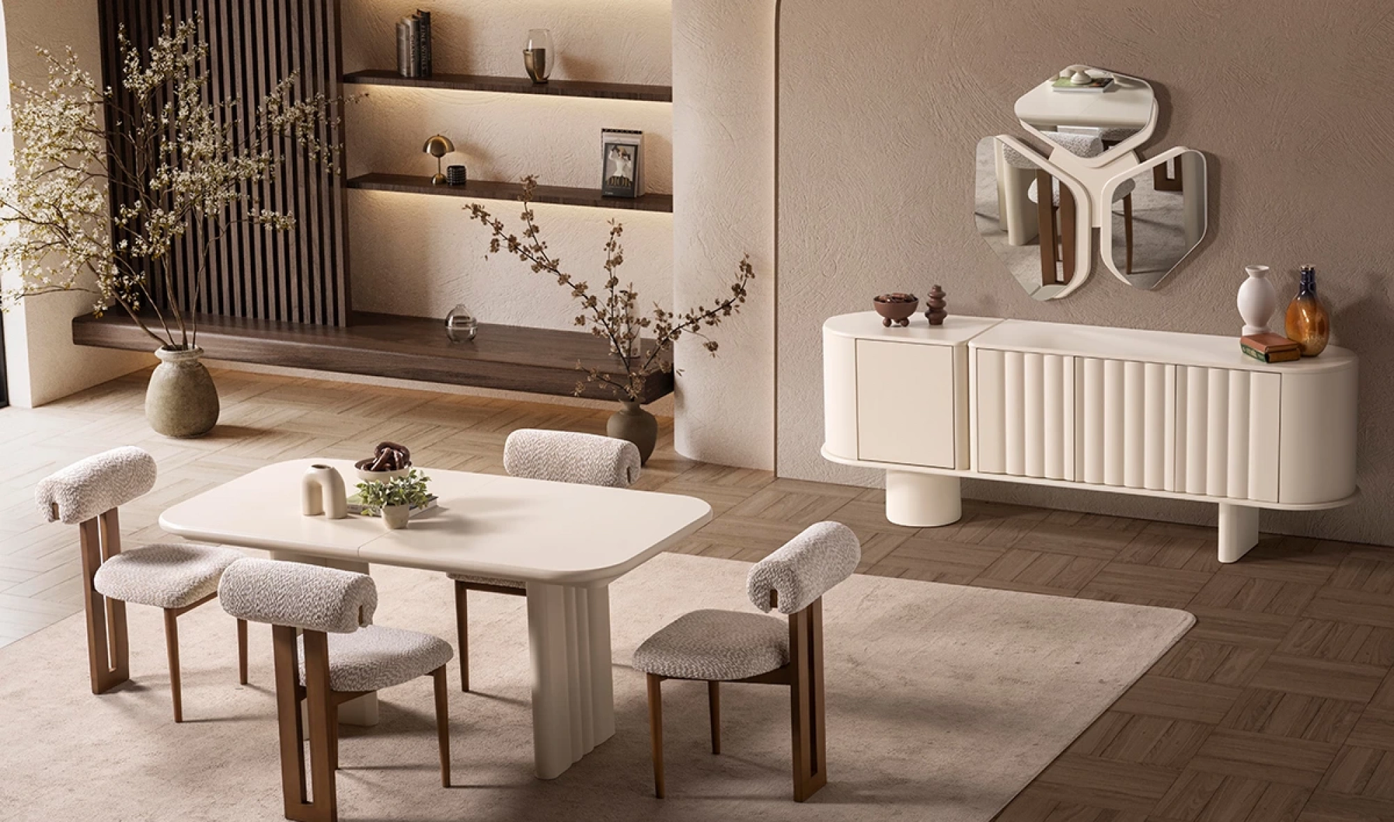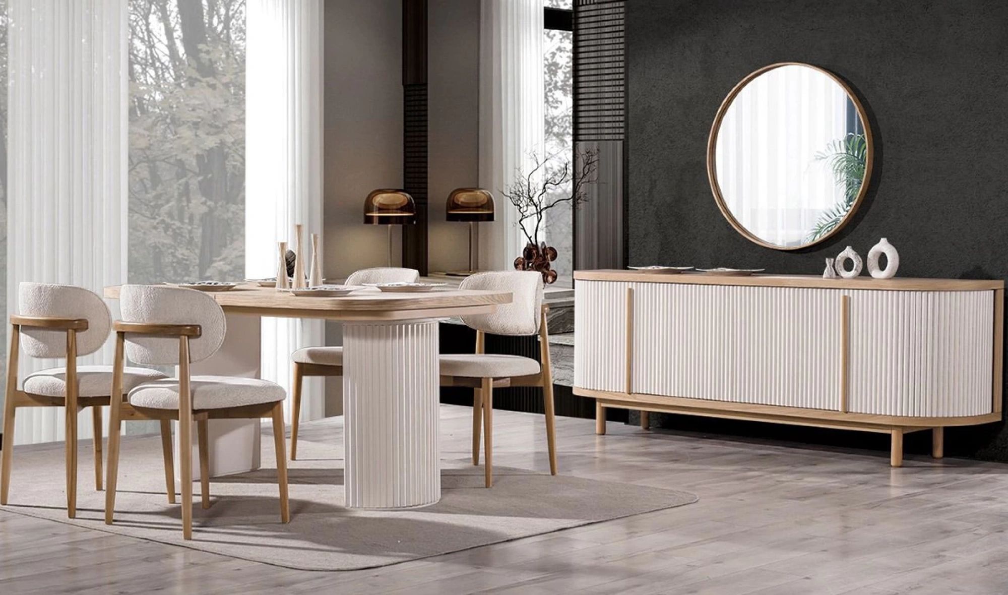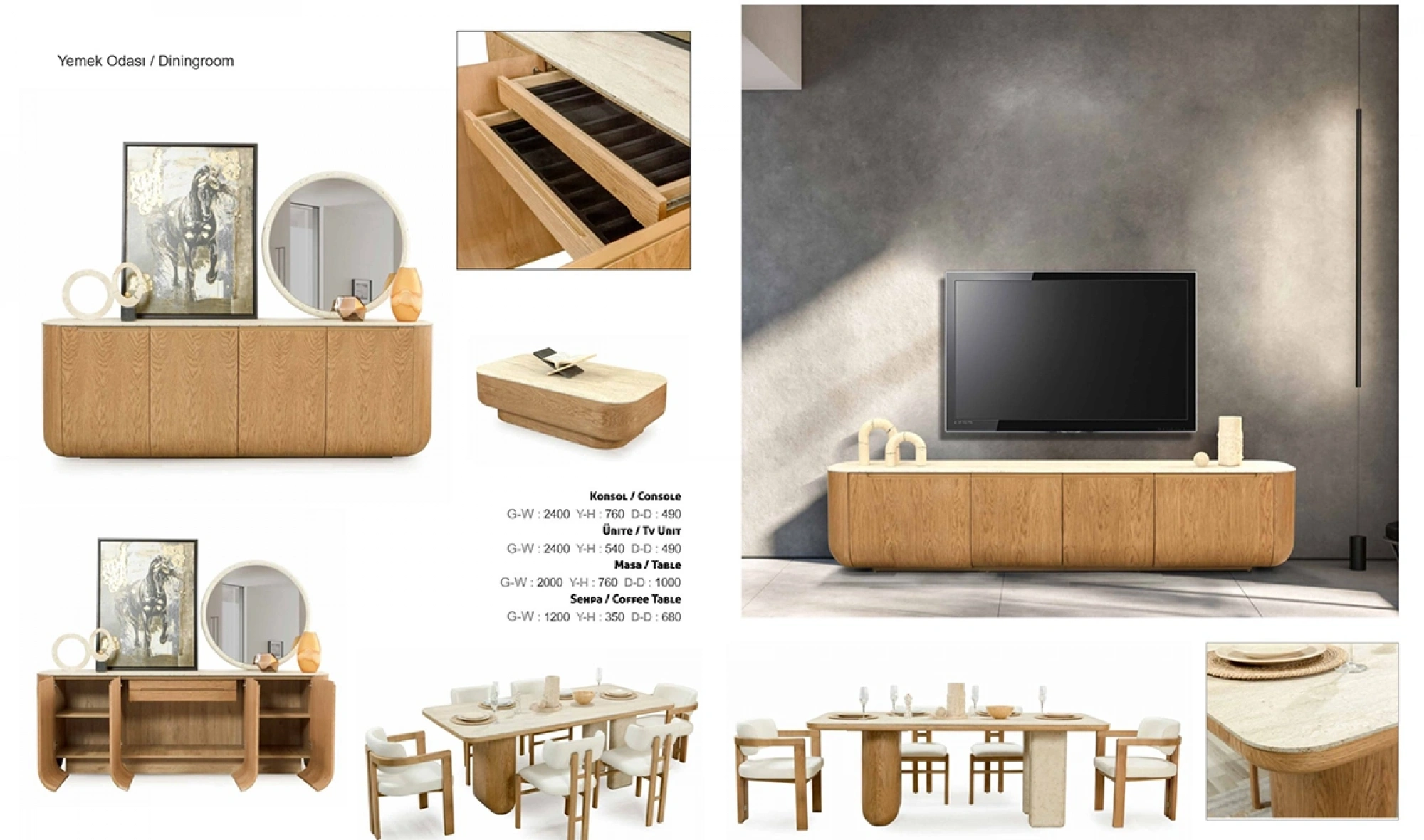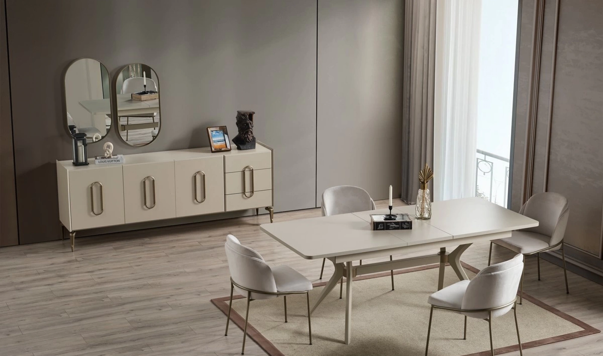 Şıklığı ve işlevselliği bir araya getiren Yasmin Yemek Odası Takımı, modern yaşam alanları için özel olarak tasarlandı. Yalın hatları, göz alıcı duruşu ve konforlu yapısıyla hem estetik hem de pratik kullanım sunar.