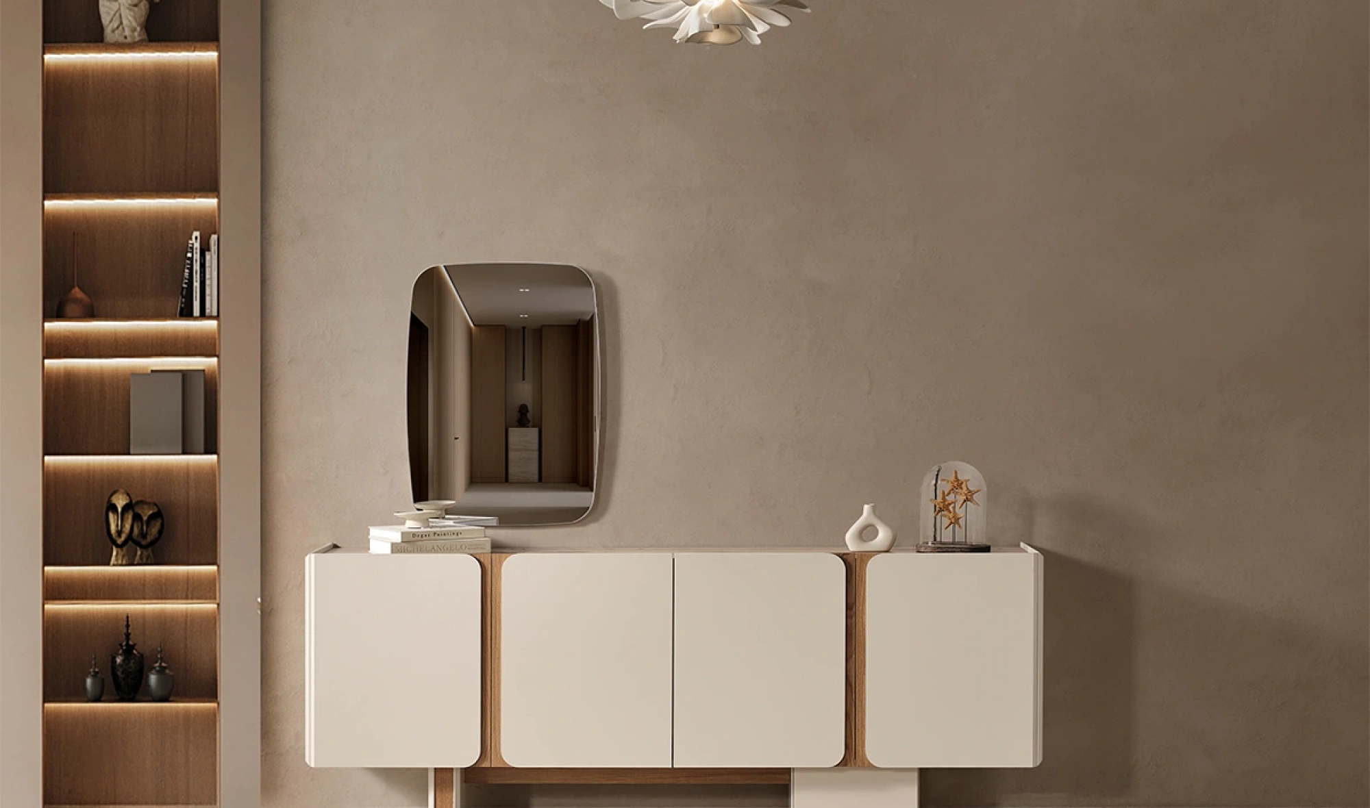 - Konsol aynasında dekoratif yansımalar